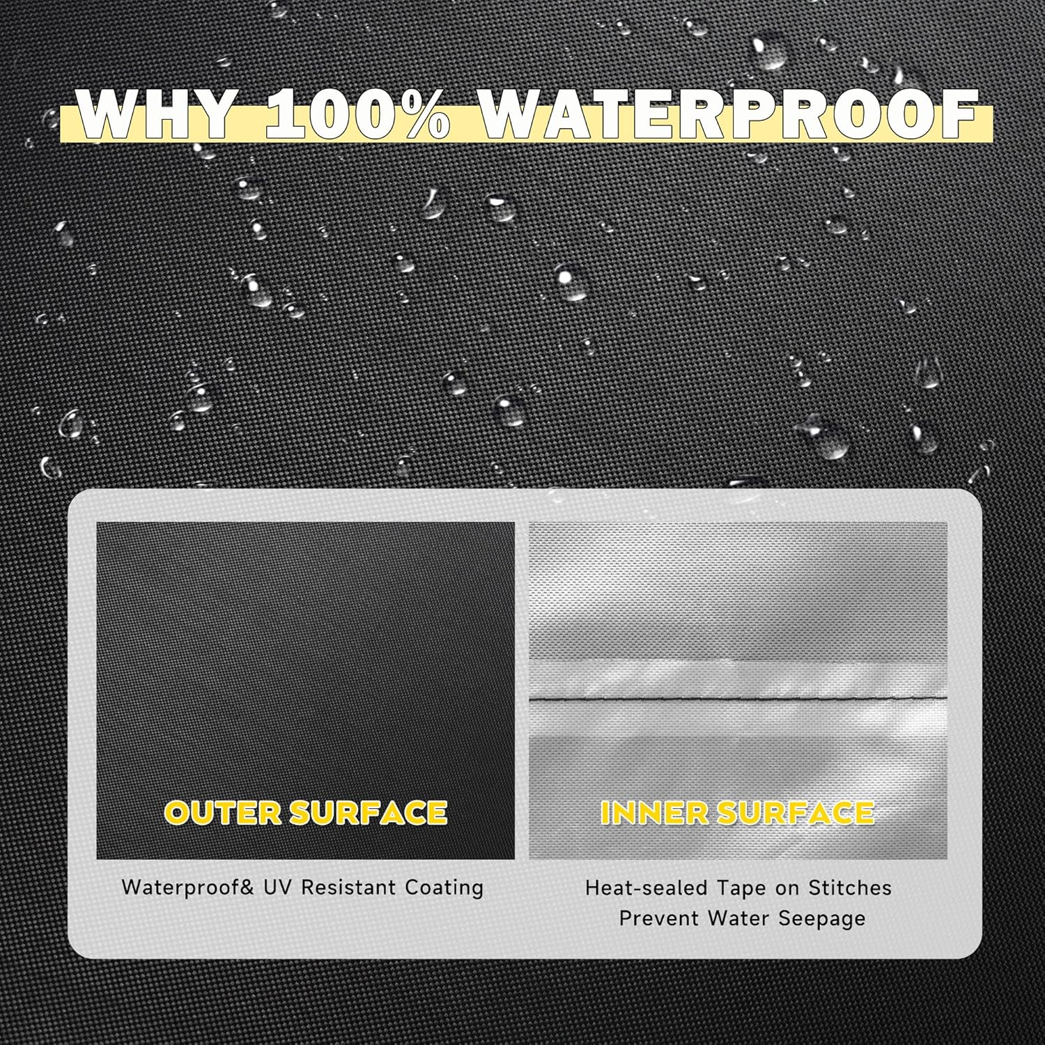 - WATERPROOF & ANTI-UV – Waterproof outer coating and heat-sealed tape on stitches prevent water seepage. Inner PU coating layer protects your outdoor BBQ cabinet from damage caused by prolonged sun exposure