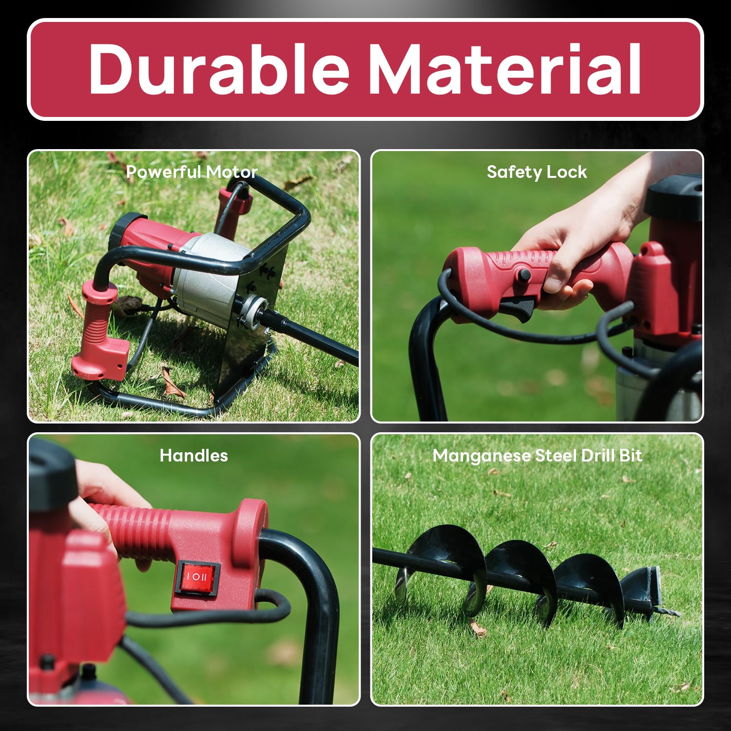 - Easy Operation: Designed for ease of use, this lightweight, plug-and-play tool requires no fuel mixing, making it perfect for tasks like installing fence posts, building decks, planting trees and shrubs, and even ice fishing.