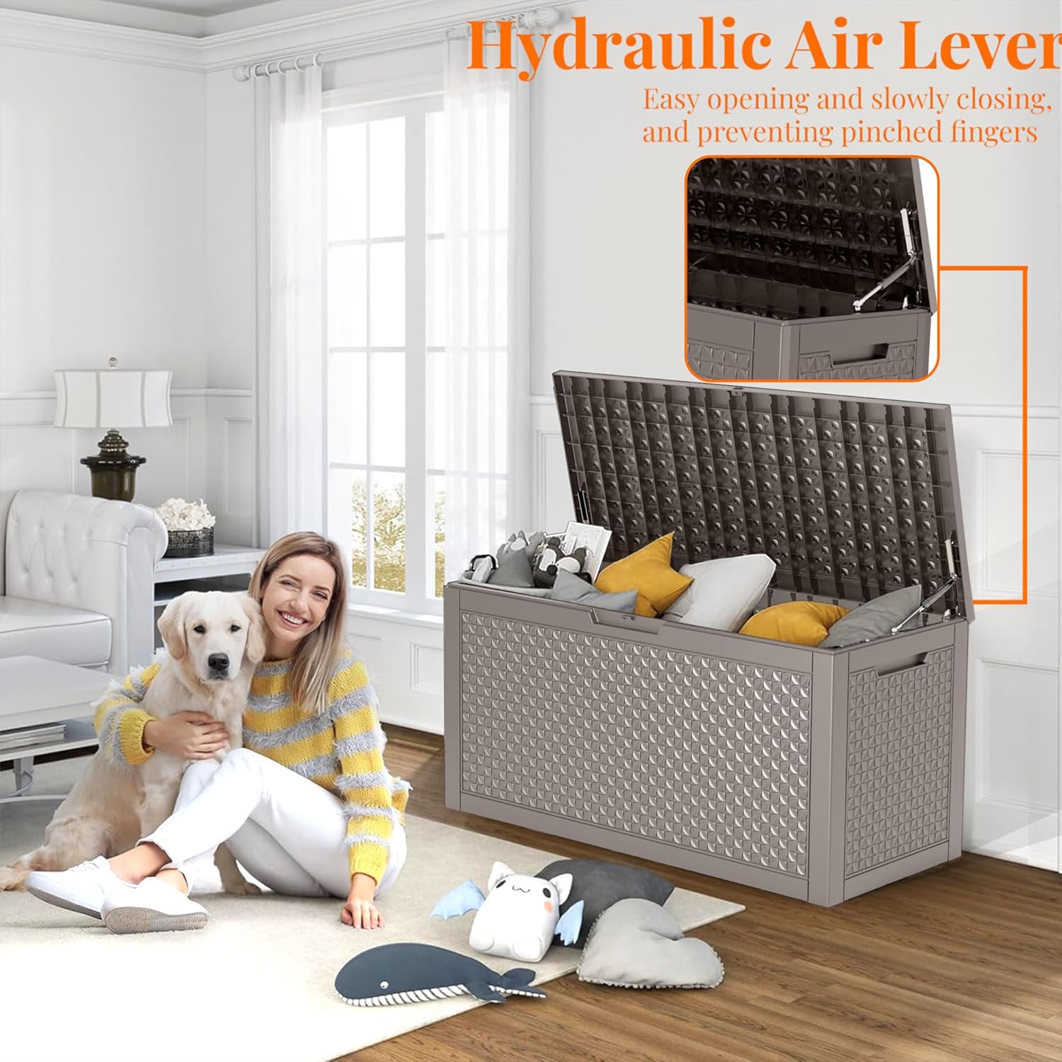 100 Gallon Outdoor Storage Box - Deck Box Waterproof Patio Furniture, Garden Tools, Cushions, Pool Accessories Outside Storage Resin Box