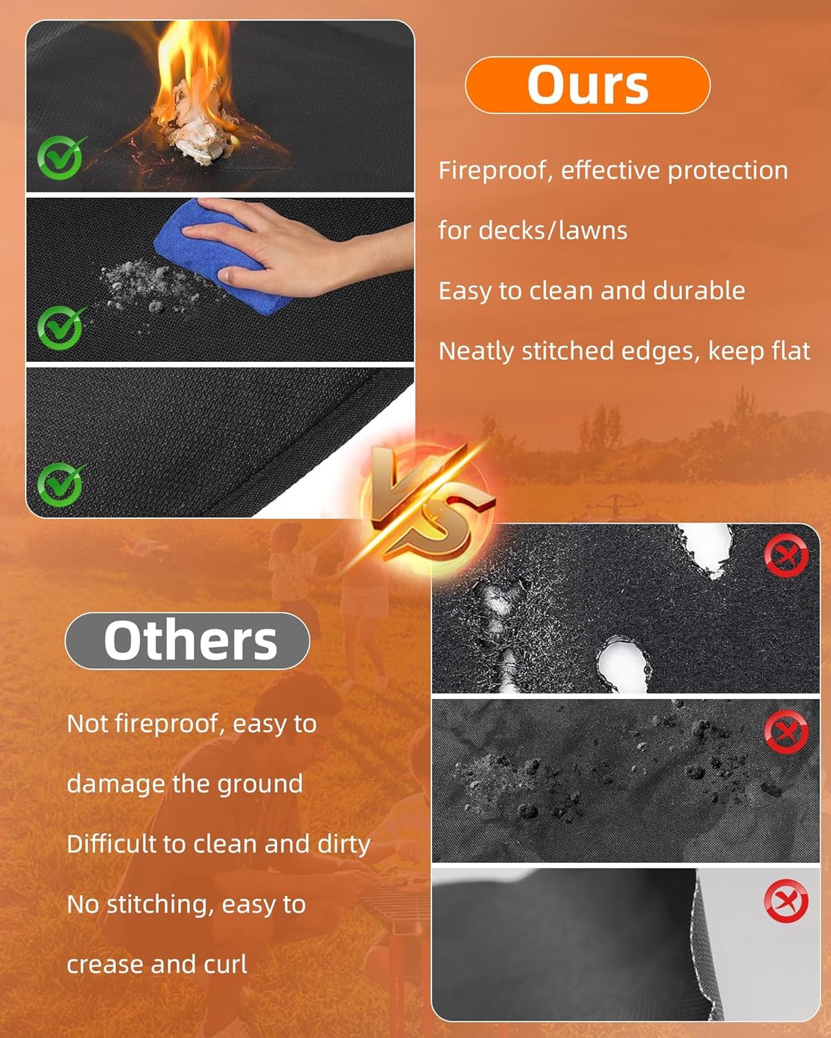 - VERSATILE PROTECTION: the fire pit mat is made of durable fiberglass with a heat-resistant coating on both sides to withstand temperatures up to 1500°f double-sided design protects decks patios and floors from grease oil spills and heat damage during indoor or outdoor grilling