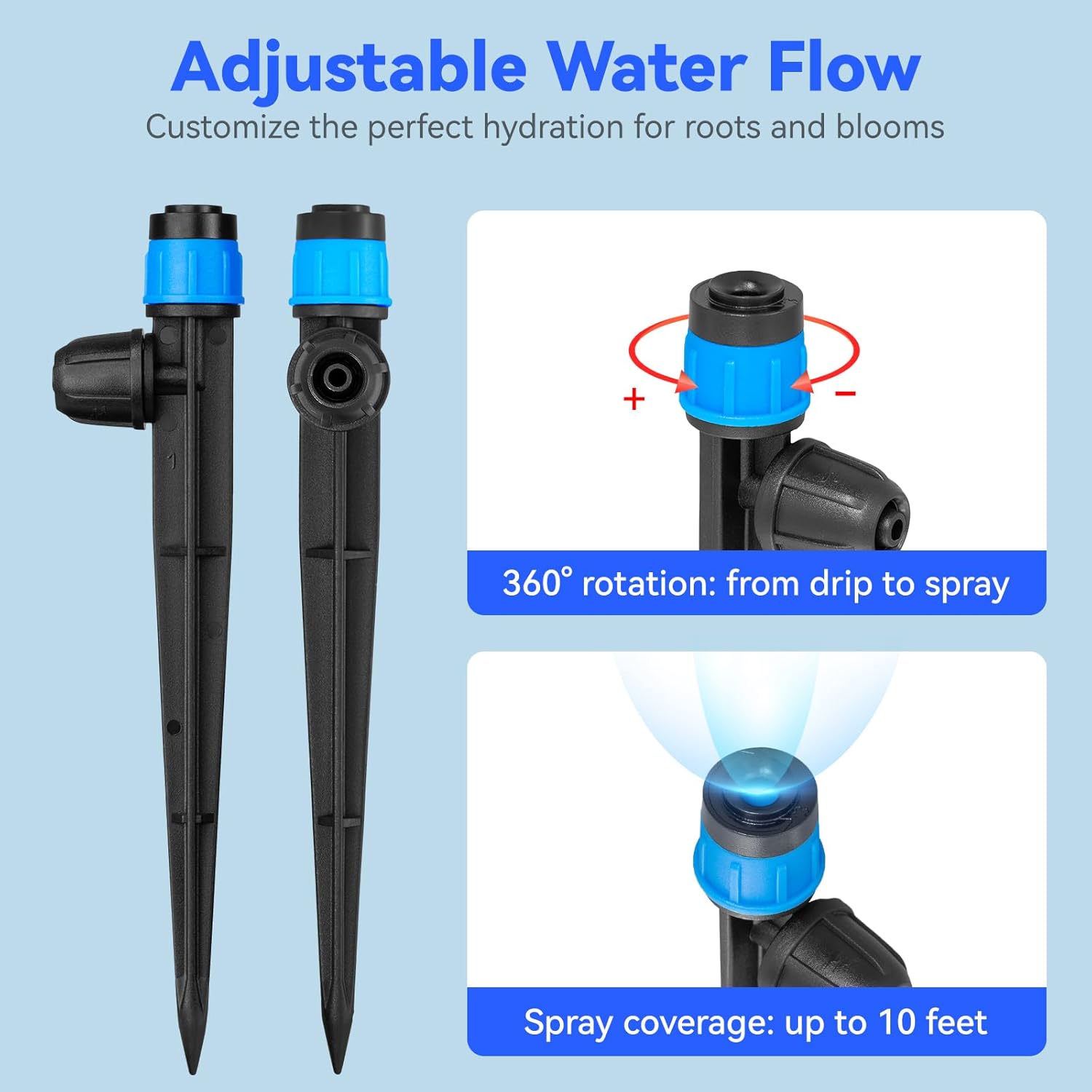 - Upgarded Design: The drip irrigation staked emitters with lock barbed design,No need to use hot water to soft the connection tubing.The lock barbed nut keep the drip line more secure for your garden plantsโ daily watering