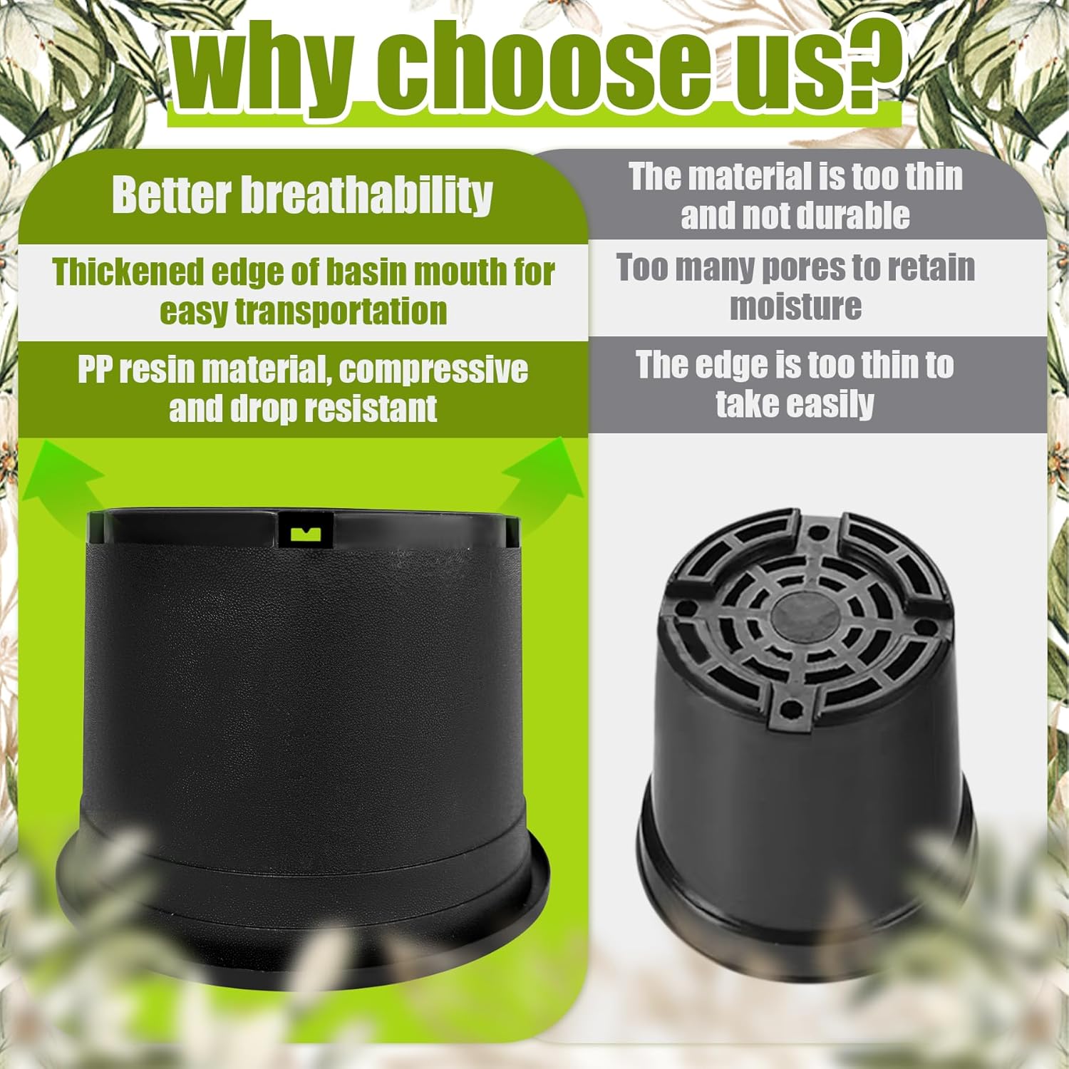 - Sturdy and durable - Plant pots are made of high quality PP plastic, which is tough, not easy to break or crack. Whether it is digging or daily use, it can withstand pressure and ensure a long service life.