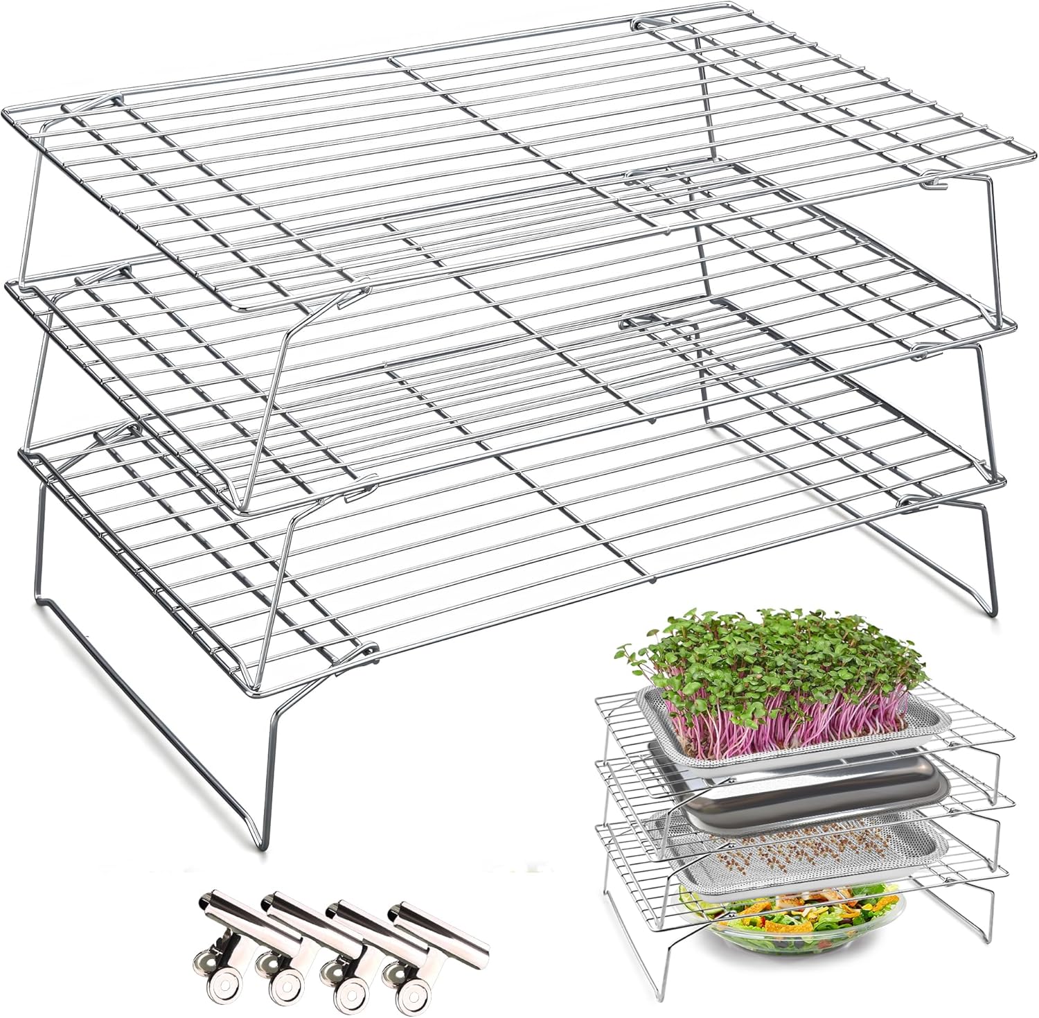 - Sturdy and Foldable Sprouting Tray Metal Plant Stand: Heavy-duty iron frame with rust-proof coating securely holds 4.2"H sprouting trays, 14"L x10"W compatibility. With clamps lock trays for stable germination, designed for indoor kitchen use, eliminating clutter while ensuring durability
