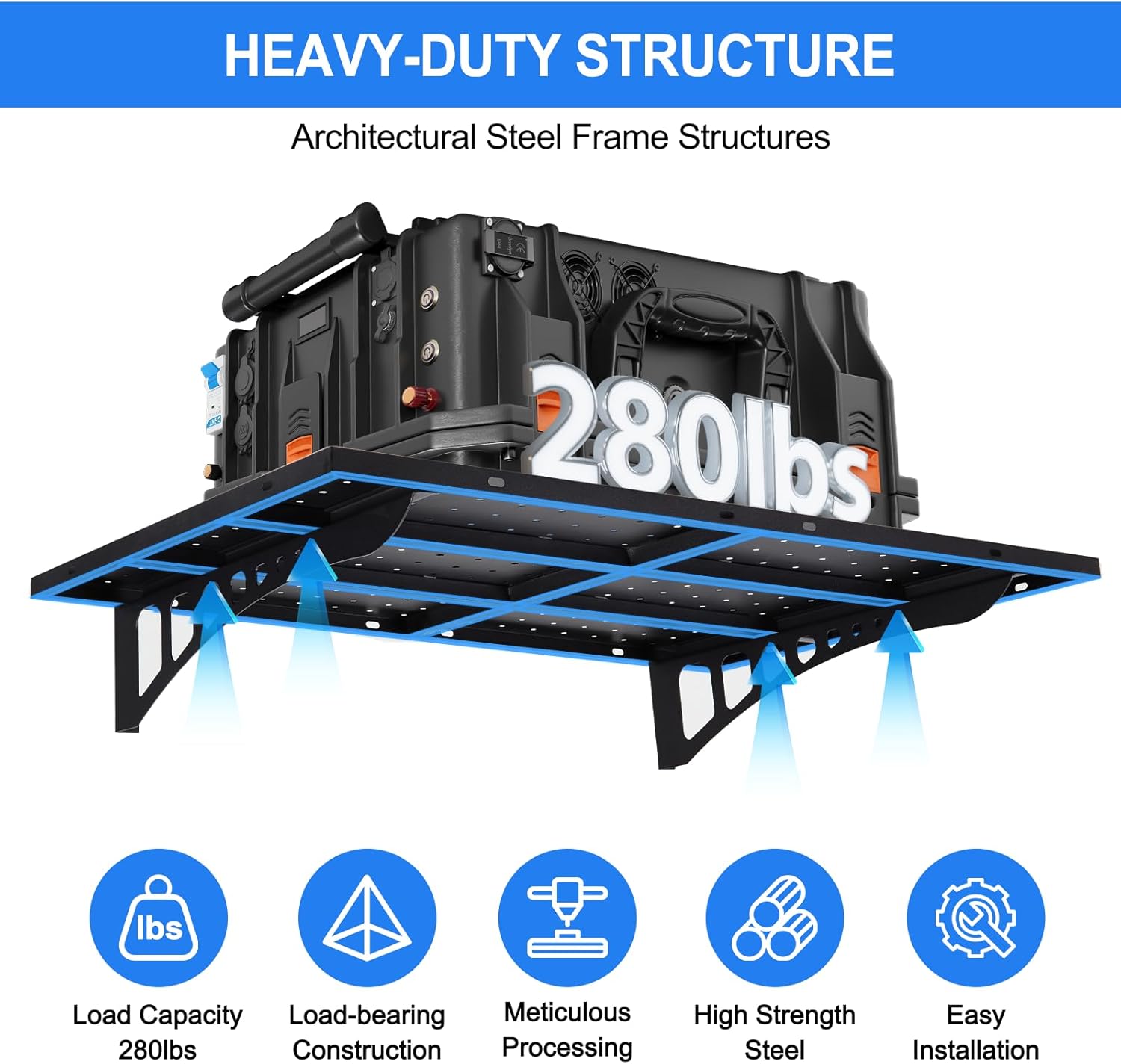 - 【HEAVY DUTY CONSTRUCTION】Garage wall shelving takes its cues from architectural frame construction, with a 2x3 ft individual bracket load capacity of 280 lbs. and a total of 560 lbs. 2 shelves which makes it easy to store most of the items in your garage.