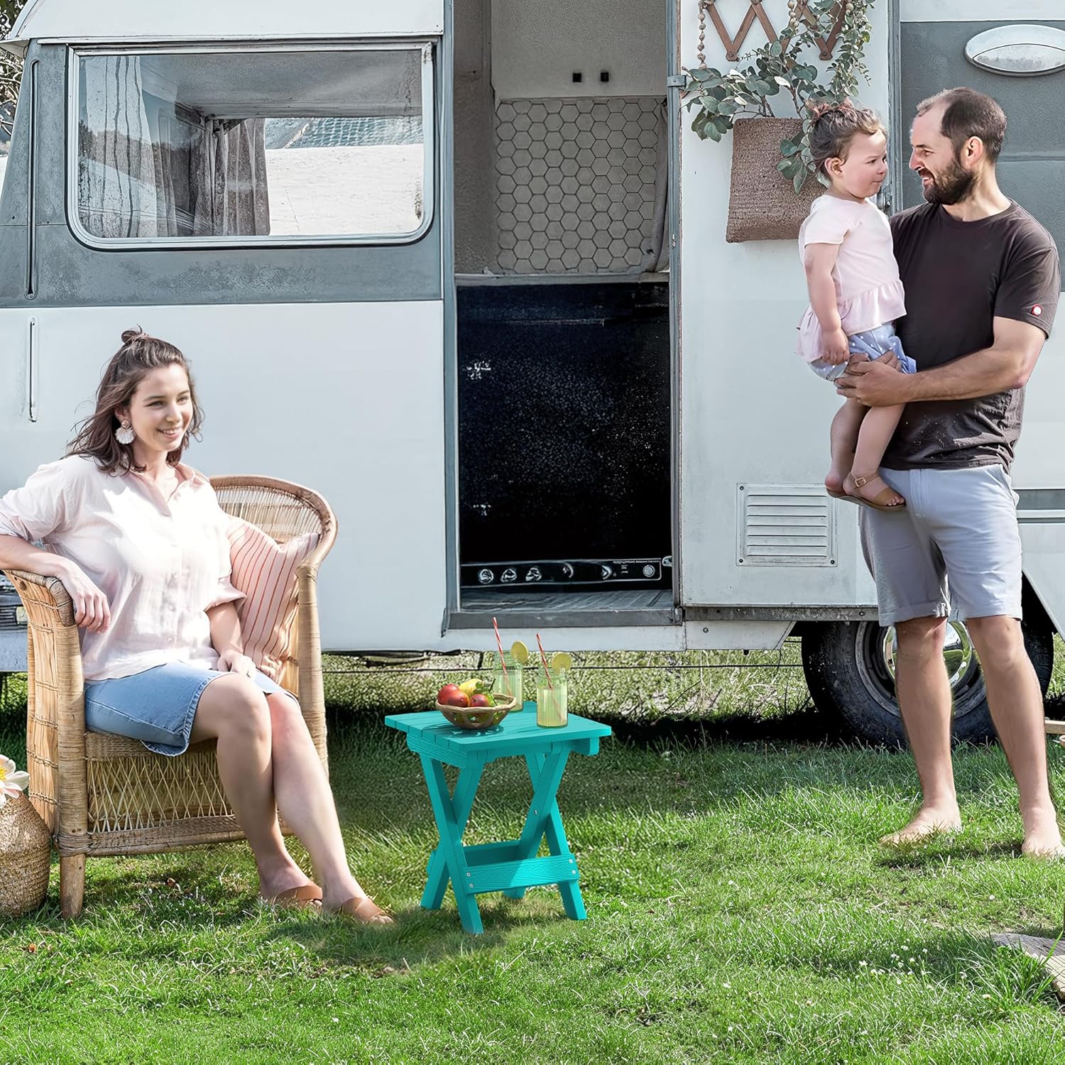 LUE BONA Small Outdoor Folding Side Table, HDPS Outside End Table for Patio, Porch, Deck, Pool, 14 Inch Height, Aruba Blue