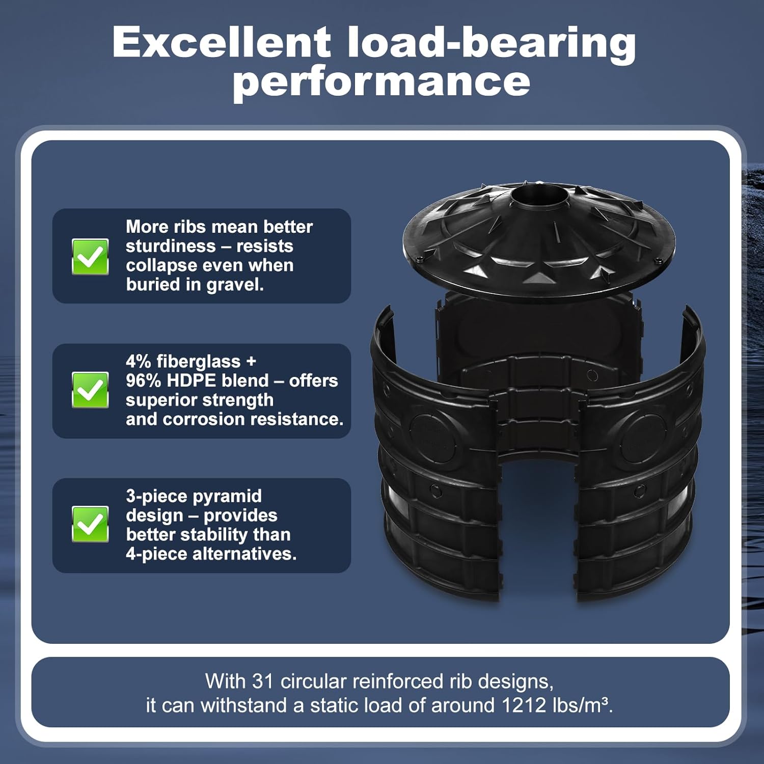 - REINFORCED MULTI-RIB STRUCTURE FOR STRENGTH – Features 31 circular reinforced ribs and a pyramid-style 3-piece assembly design that delivers superior load-bearing performance and long-term structural stability.