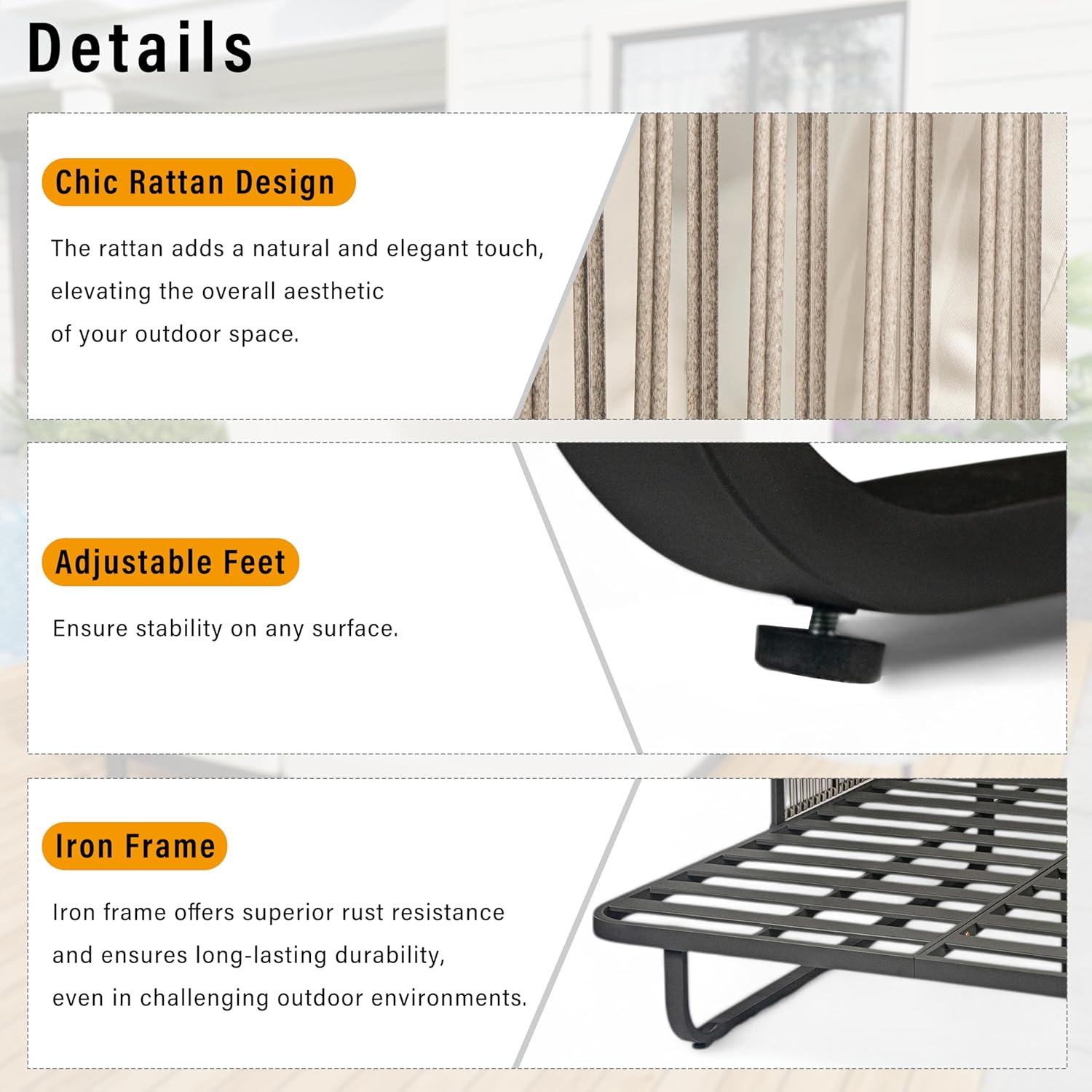 - π Chic Rattan Side Design for a Modern Look - The daybed is accented with stylish, woven rattan details along the sides, creating a sophisticated, contemporary appearance. The rattan adds a natural and elegant touch, elevating the overall aesthetic of your outdoor space.