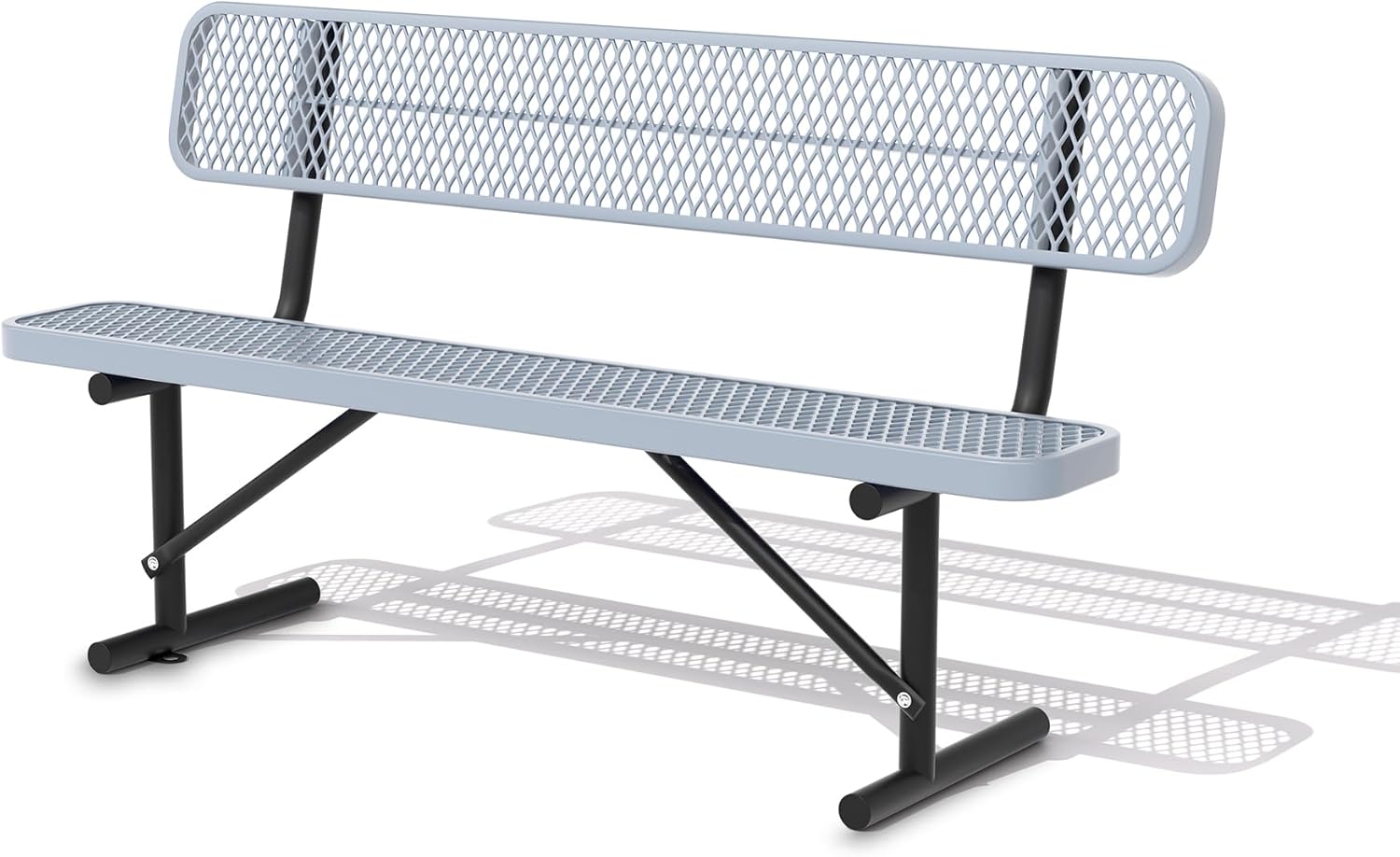 6 Feet Heavy Duty Metal Park Bench for Outside, Outdoor Bench with Backrest & Portable Frame, Commercial Benches for Shopping Malls, Stores, Parks, Patios, Decks, Grey