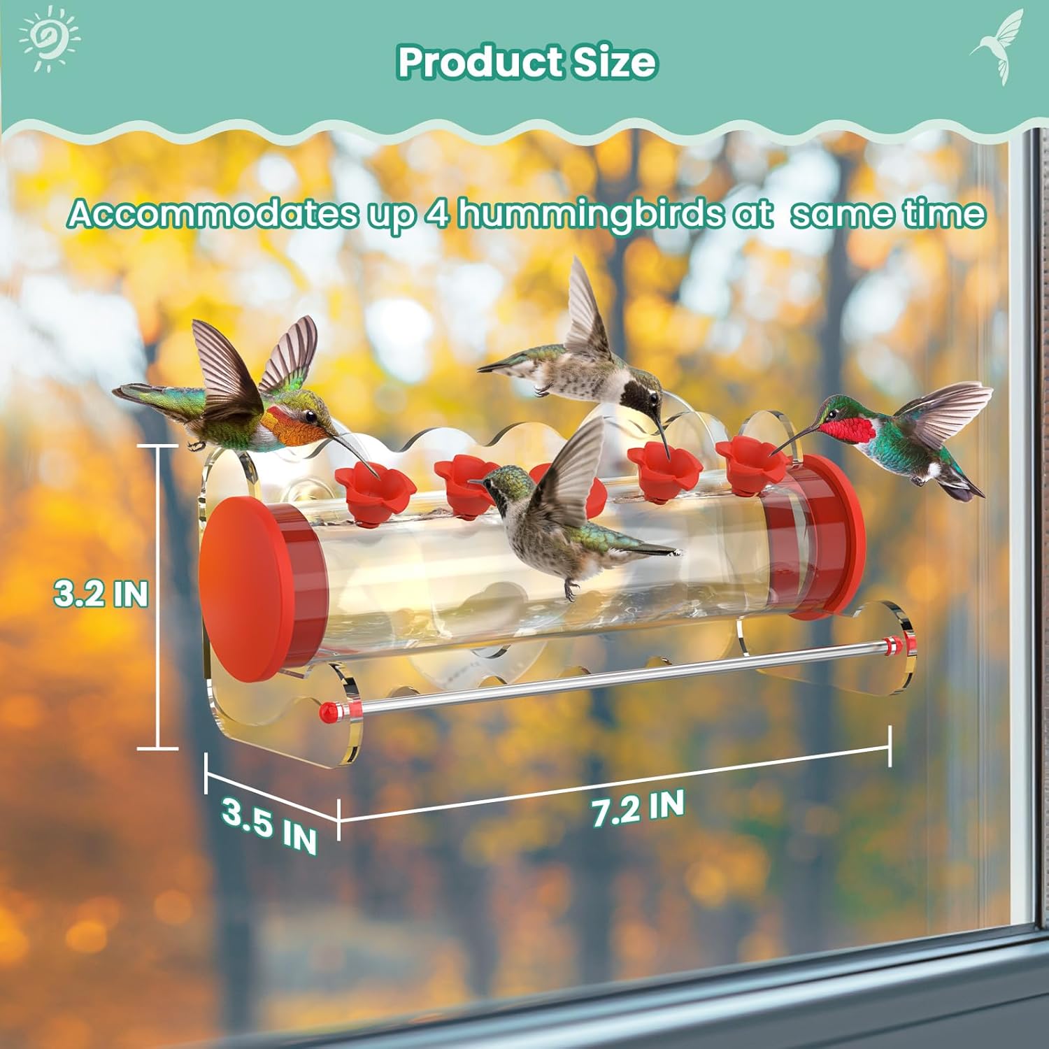 - 【No-Mess Design】Advanced leak-proof seal technology prevents nectar dripping. The vacuum base with 3 industrial-strength suction cups stays firmly attached to glass in all weather conditions. Removable acrylic body for easy filling water and cleaning.