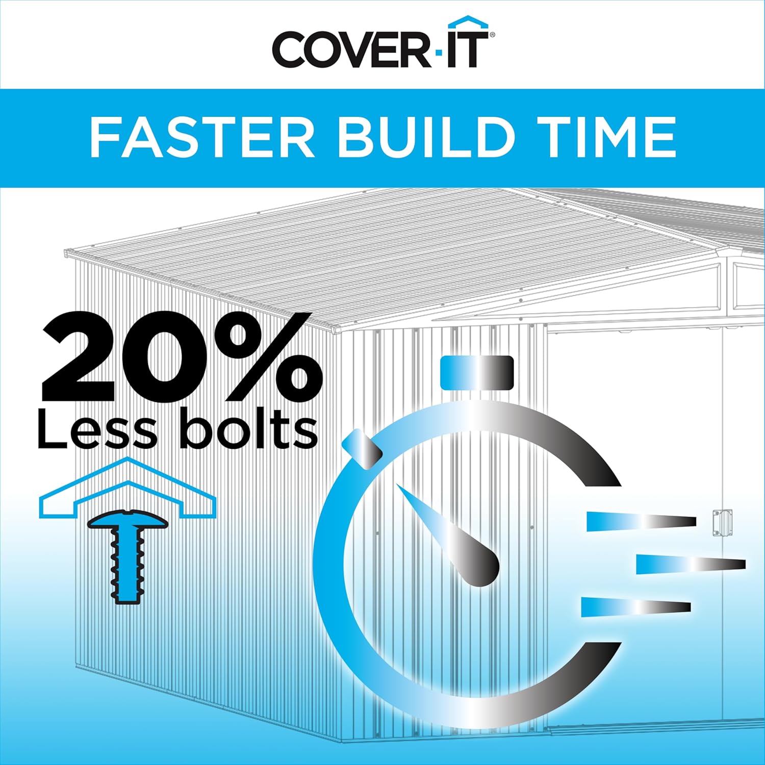 Cover It 6' x 4' Galvanized Steel Outdoor Storage Shed with Pent Roof and Lockable Sliding Doors, Weather-Resistant Steel Storage Shed for Backyards, Gray