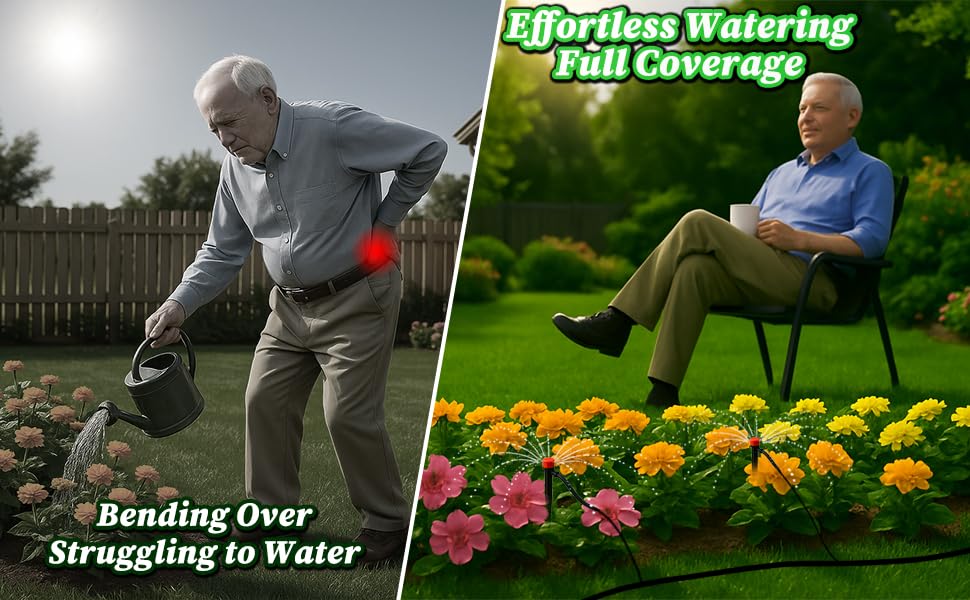 - 3 .【Adjustable Drip Emitters】 360° rotating cap transitions between precise watering modes