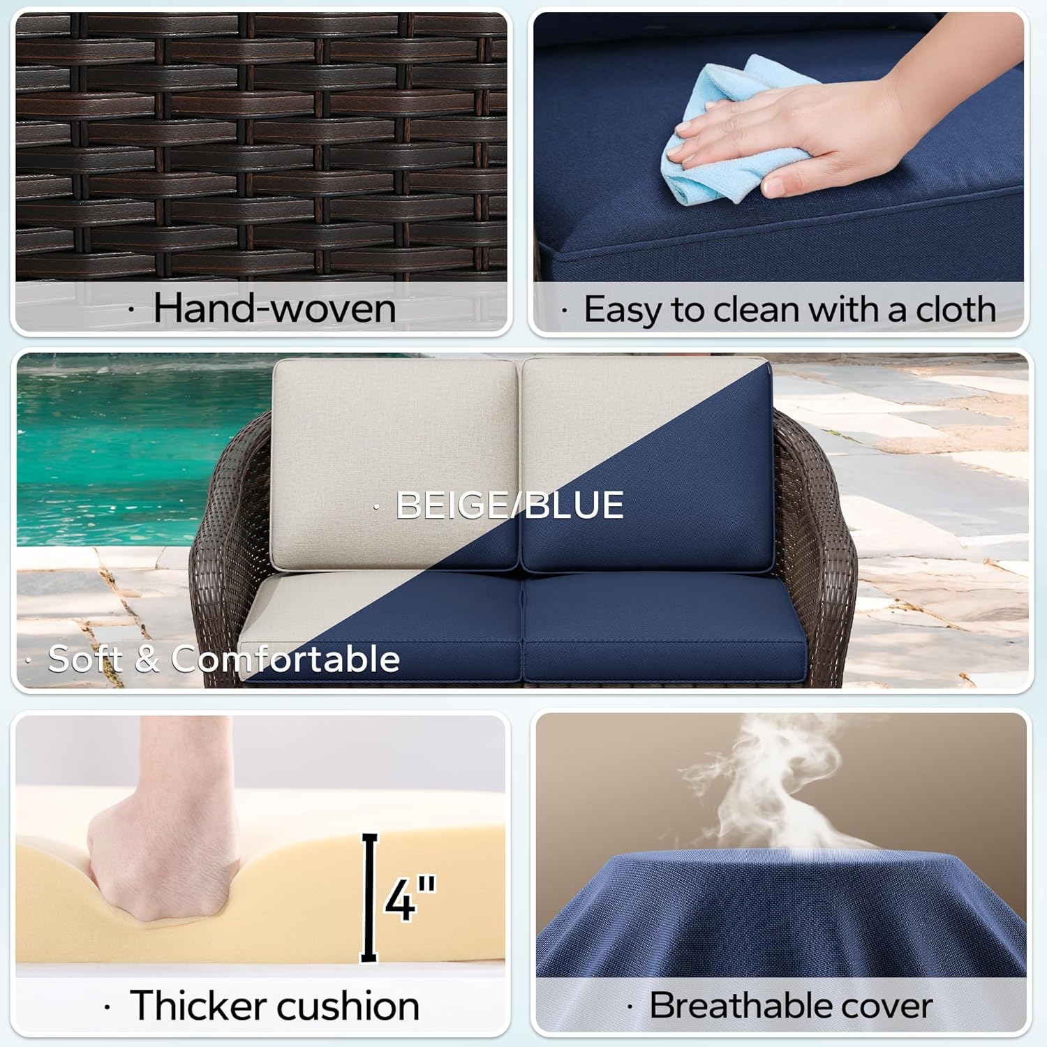 - Sturdy and Durable: The outdoor furniture set is made of steel frame and PE wicker, ensuring that it will be more sturdy. Fade-resistant fabrics of cushions is stain & fade resistance, tear & wear resistance