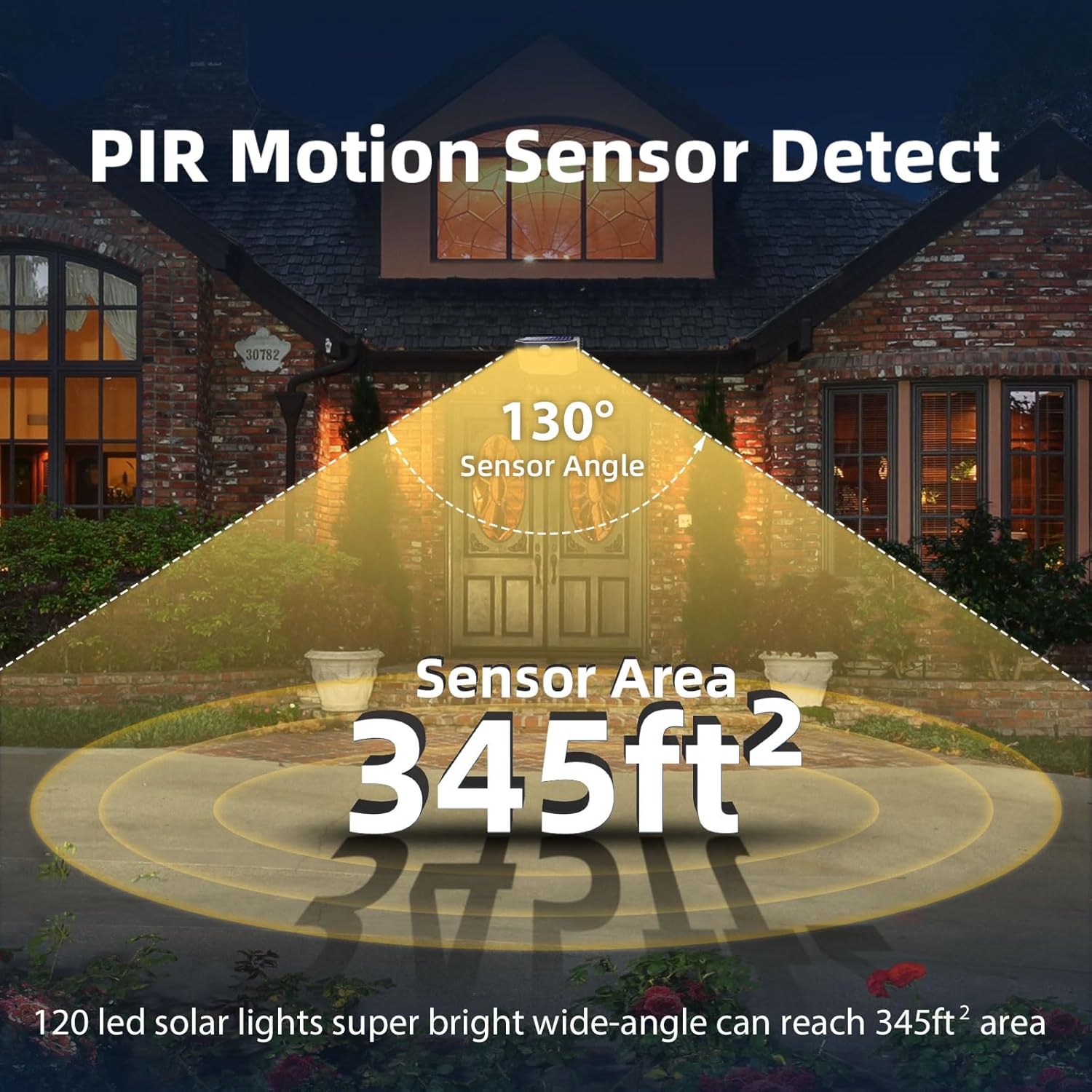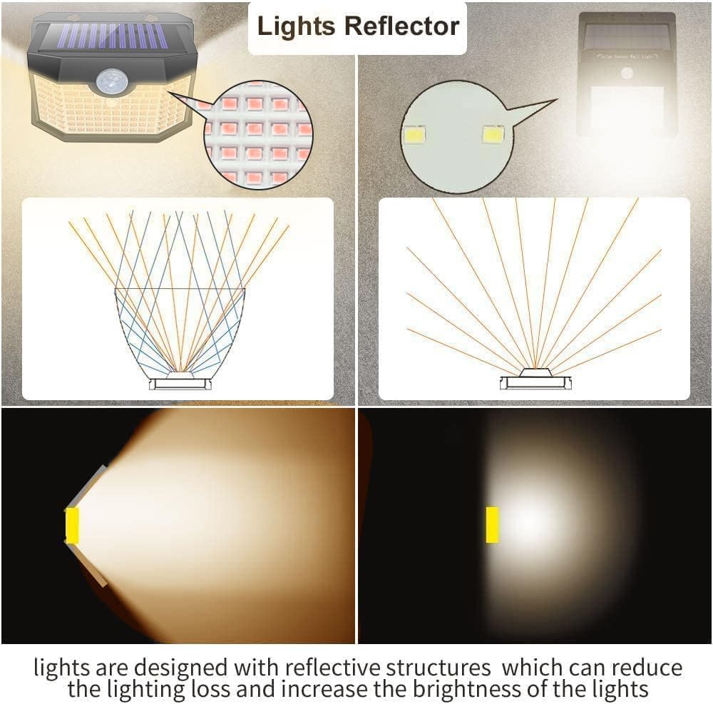 HMCITY 120 LED Outdoor Solar Lights- with Motion Sensor and 3 Lighting Modes, IP65 Waterproof Wide Solar Wall Lights Ideal for Garden Patio Yard (Front Button 6Packs, Warm White)
