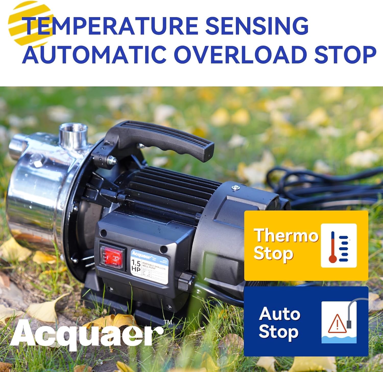 Acquaer 1.5 HP Portable Shallow Well Pump Garden Pump, Stainless Steel, 1210 GPH, 115V Sprinkler Water Transfer Draining Irrigation for Water Removal and Lawn Garden
