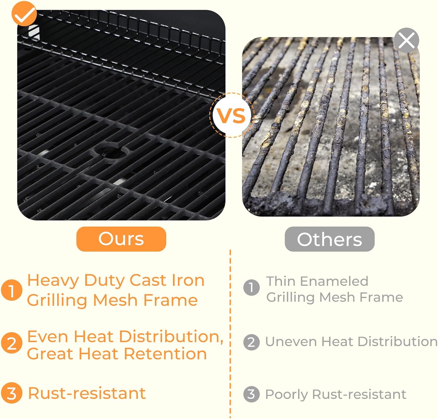 - 【Ample Cooking Space】Enjoy ample grilling space with a 401 sq. in. main area, plus a 108 sq. in. warming rack, providing plenty of room to cook your favorite dishes. The stainless steel warming rack helps keep food hot while you prepare the rest of the meal