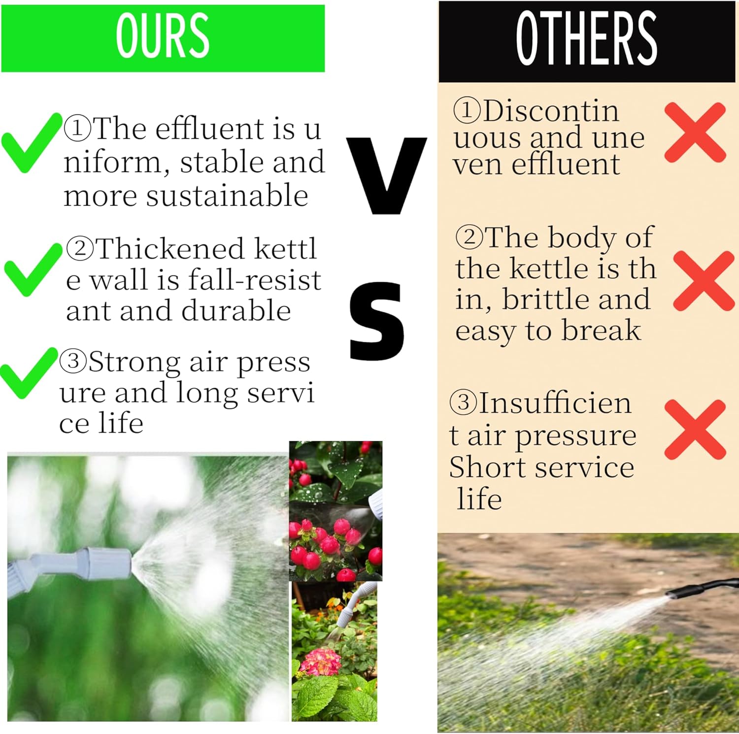 - 【Adjustable Nozzle】: The nozzle can adjust the intensity of water spray, from direct jet to fine mist. The ergonomically designed locking handle and pressure - release valve allow you to spray water easily and continuously. Two adjustable spraying modes can meet your various spraying needs Switch between two adjustable nozzles for the perfect spray pattern— targeted stream for weeds or fine mist for delicate plants