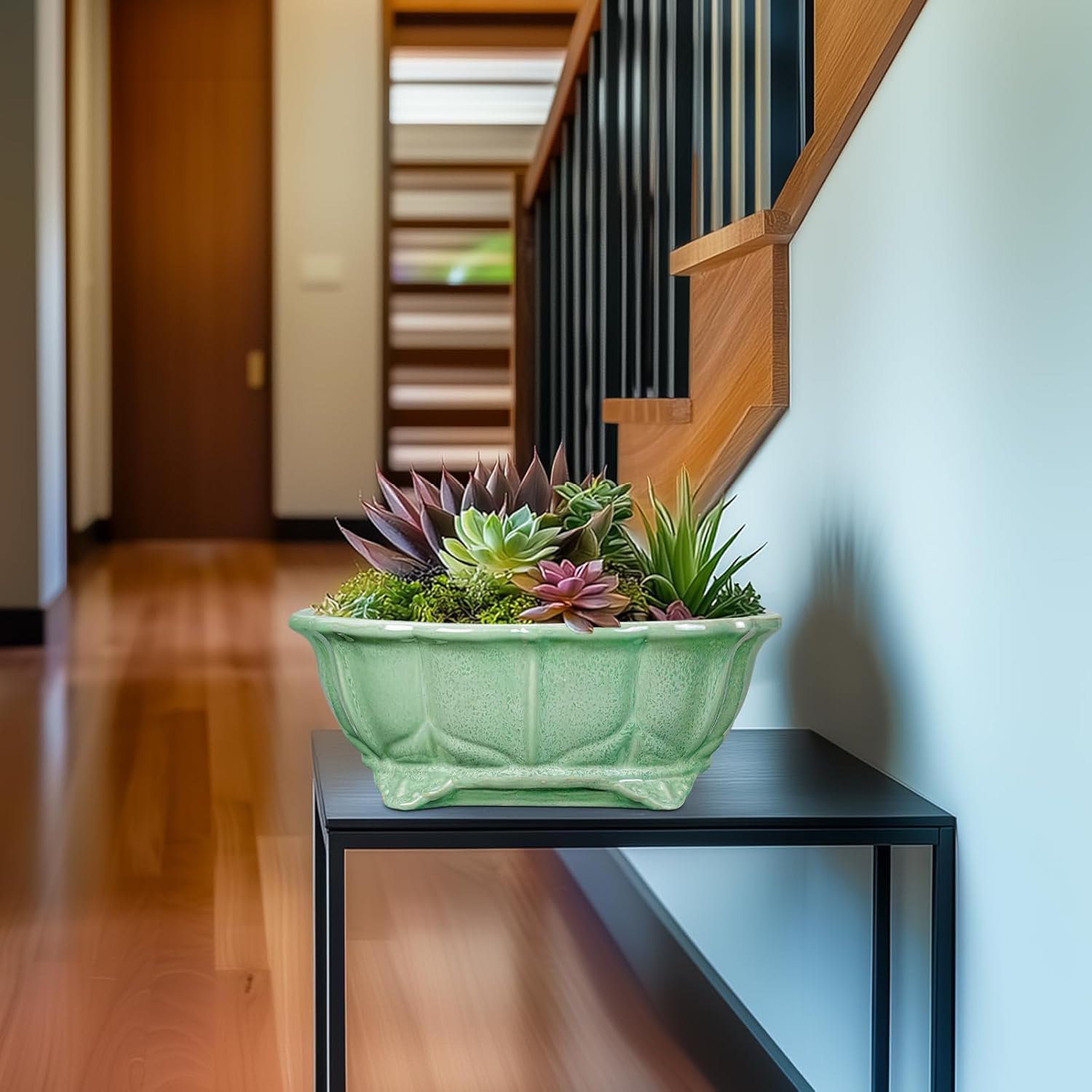 - Planter Design: Featuring a beautiful blue reactive glaze finish and elegant rectangluar appearance, this bonsai pots combines practicality with beauty, suitable for table, desk, windowsill, shelves, living room, bedroom, bathroom, porch, study, office, patio, balcony, zen garden, any indoor or outdoor space