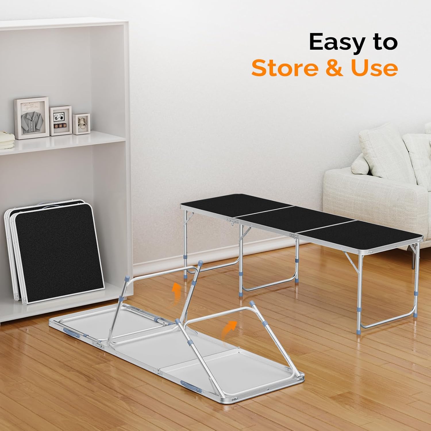 - NO ASSEMBLE NEED: The table is assembled. It can be opened and folded in a few second which is very easy and convenient.