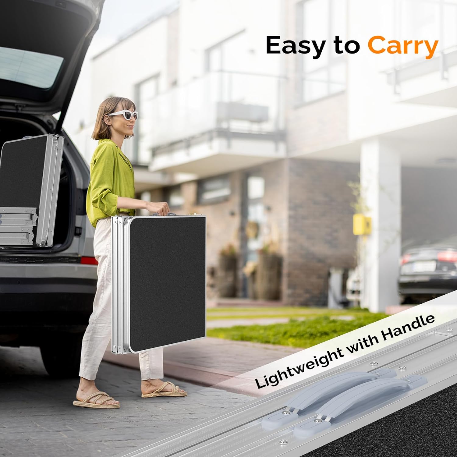 - LIGHTWEIGHT&FOLDABLE: MDF tabletop and aluminum feet make its weight just 14.3 lbs. The feet could be set off and tabletop could fold in half, foldable like suitcase(23.8"*23.8"). It is convenient to carry it to anywhere with its soft carry handle.