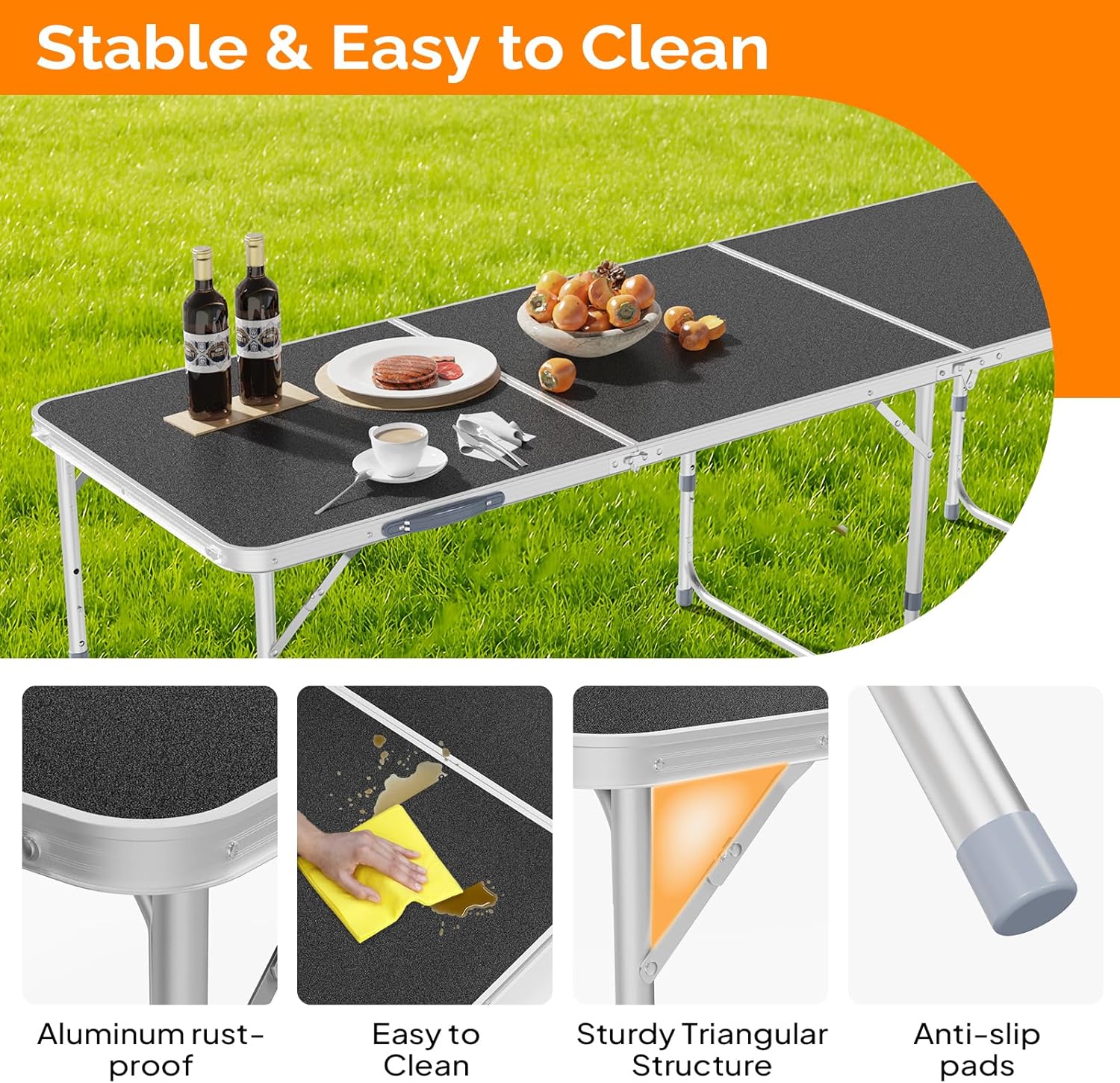 - MULTIPURPOSE TABLE: The foldable table is universal . Perfect for outdoor and indoor activities, camping, picnic, hiking, fishing, Dining, BBQ, party, travel, gathering, concert, sports, event.