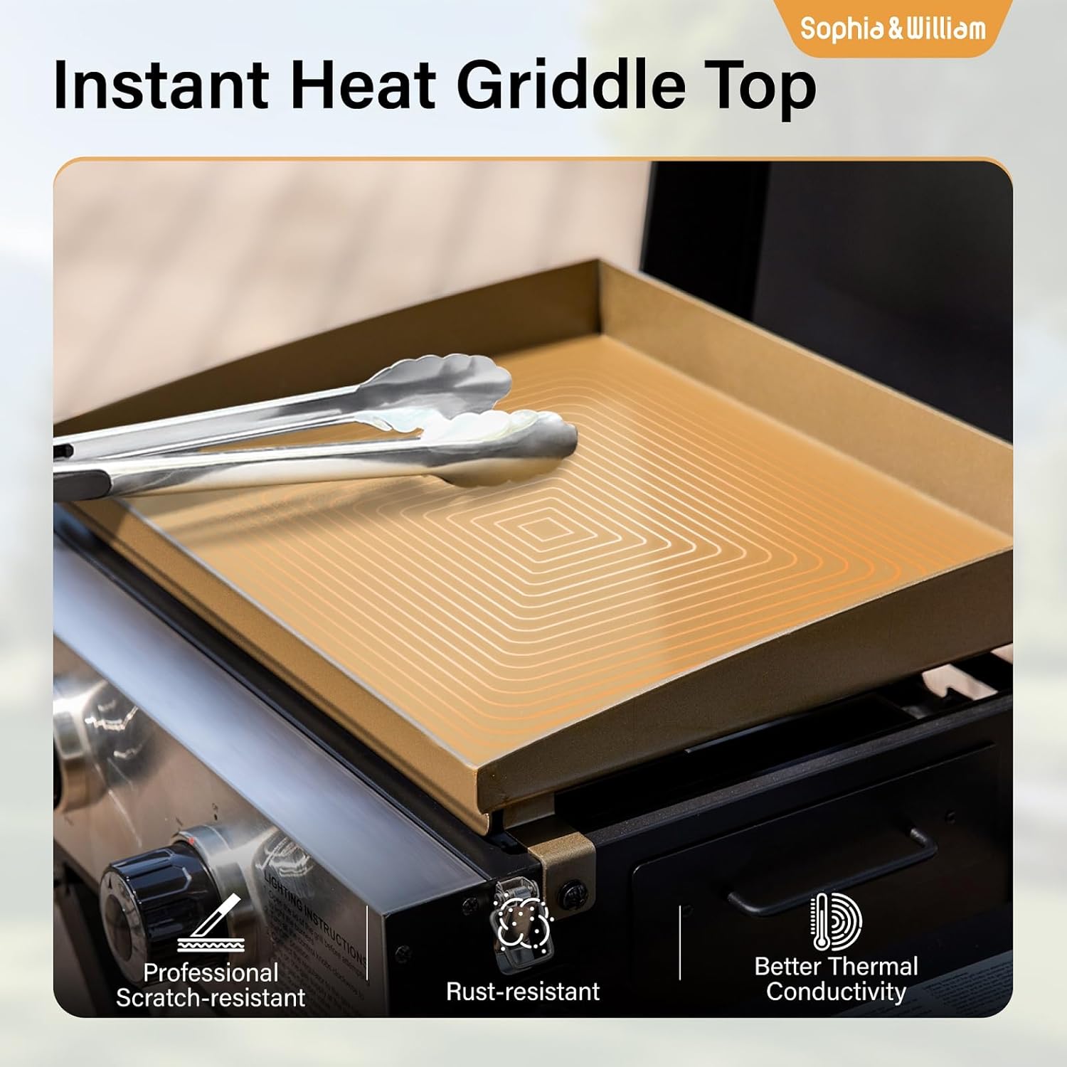 Sophia & William Portable Gas Grill Griddle, Small Propane BBQ grill with Foldable Legs & Wheels for Outdoor Barbecue, Camping, Tailgating, Roadtrip, RV, 2 Burner Flat Top Griddle, 20,000 BTU, Black