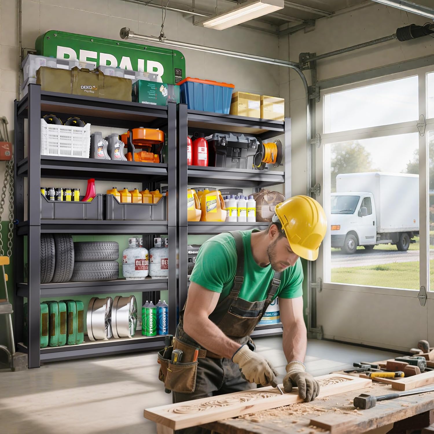 - 【Powerful Storage Capacity】 Multi-functional shelves are designed for ultimate space tidiness. If you are still troubled by how to organize your cluttered garage and which old items to shed, garage storage shelves help you easily regain a neat and orderly home environment. Not only do the shelf expand your storage space for a clean and aesthetically pleasing environment, but the open space allows you to find items at a glance.