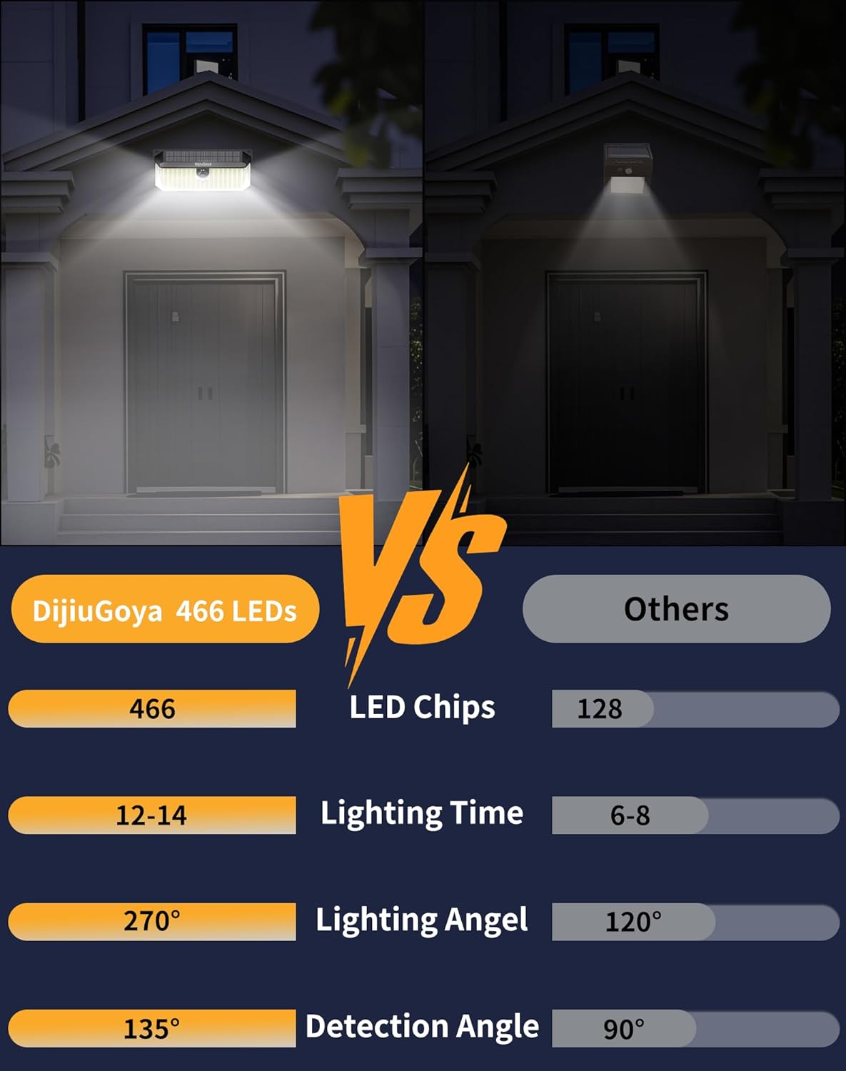 - 466-LED, 4000 Lm brightness: Lights up patios, fences, and gardens with daylight-like clarity so your family enjoys outdoor evenings with peace of mind