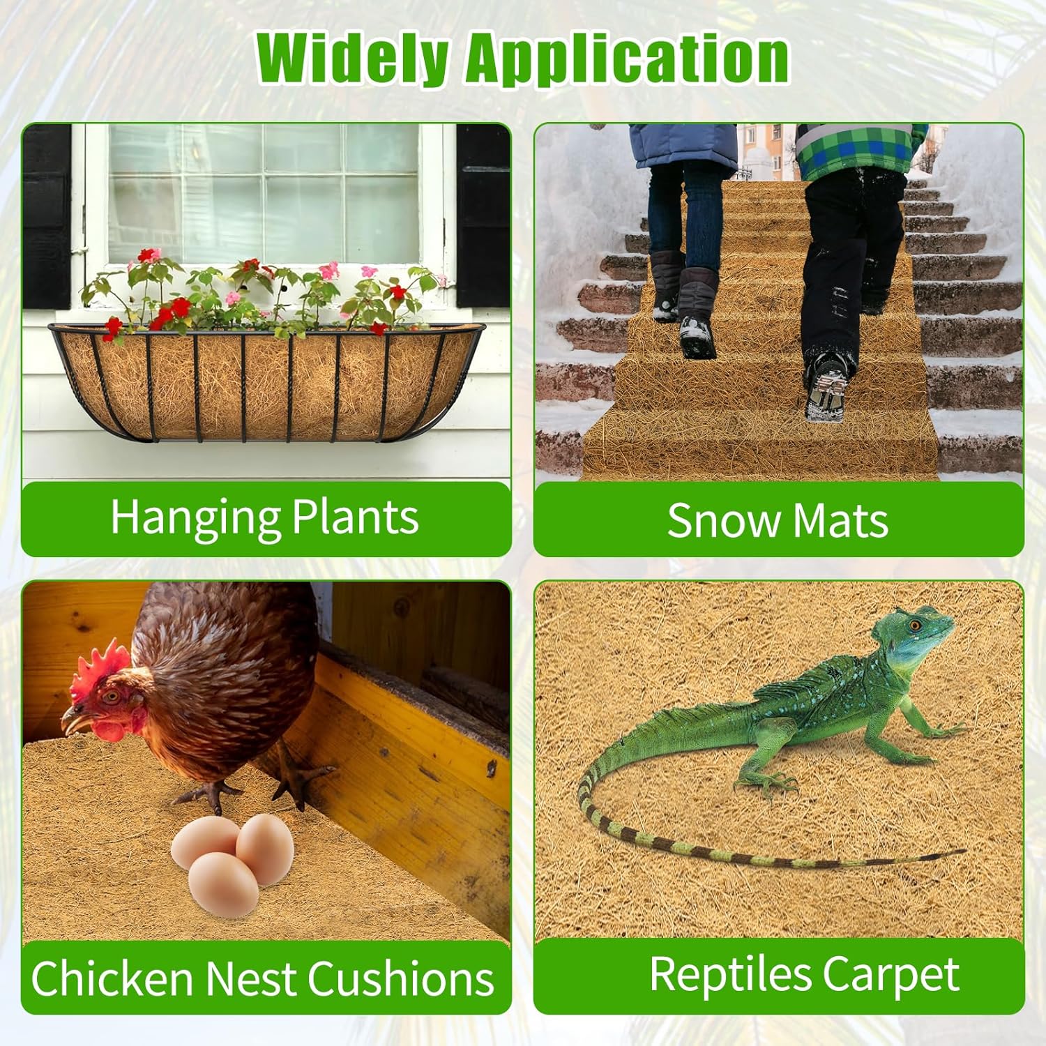 - Easy to Cut & DIY: The coconut fiber pad can be easily cut into various shapes depending on the sizes of flowerpots and baskets to fit different planters and meet your other DIY needs. Such as some Hanging Basket, Garden Decoration, Animal Pet Pads, Reptile Carpet and Nesting Boxes.