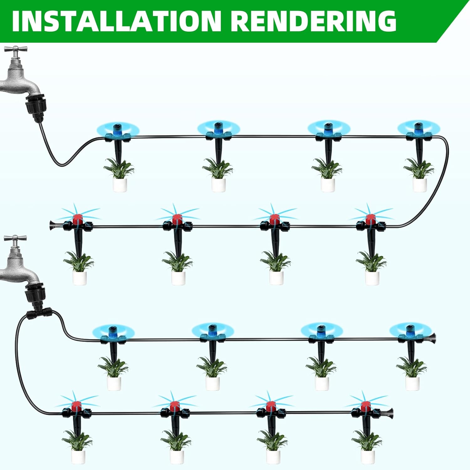 - 【New Upgrade Quick-Connectors Save Your Time】: Our irrigation system features a new upgrade quick connector design that automatically locks and seals, say goodbye to the trouble of heating pipes, making installation a breeze. you just connect the components and you can easily start watering your garden. this user-friendly design ensures that you can quickly set up the irrigation system and save your time