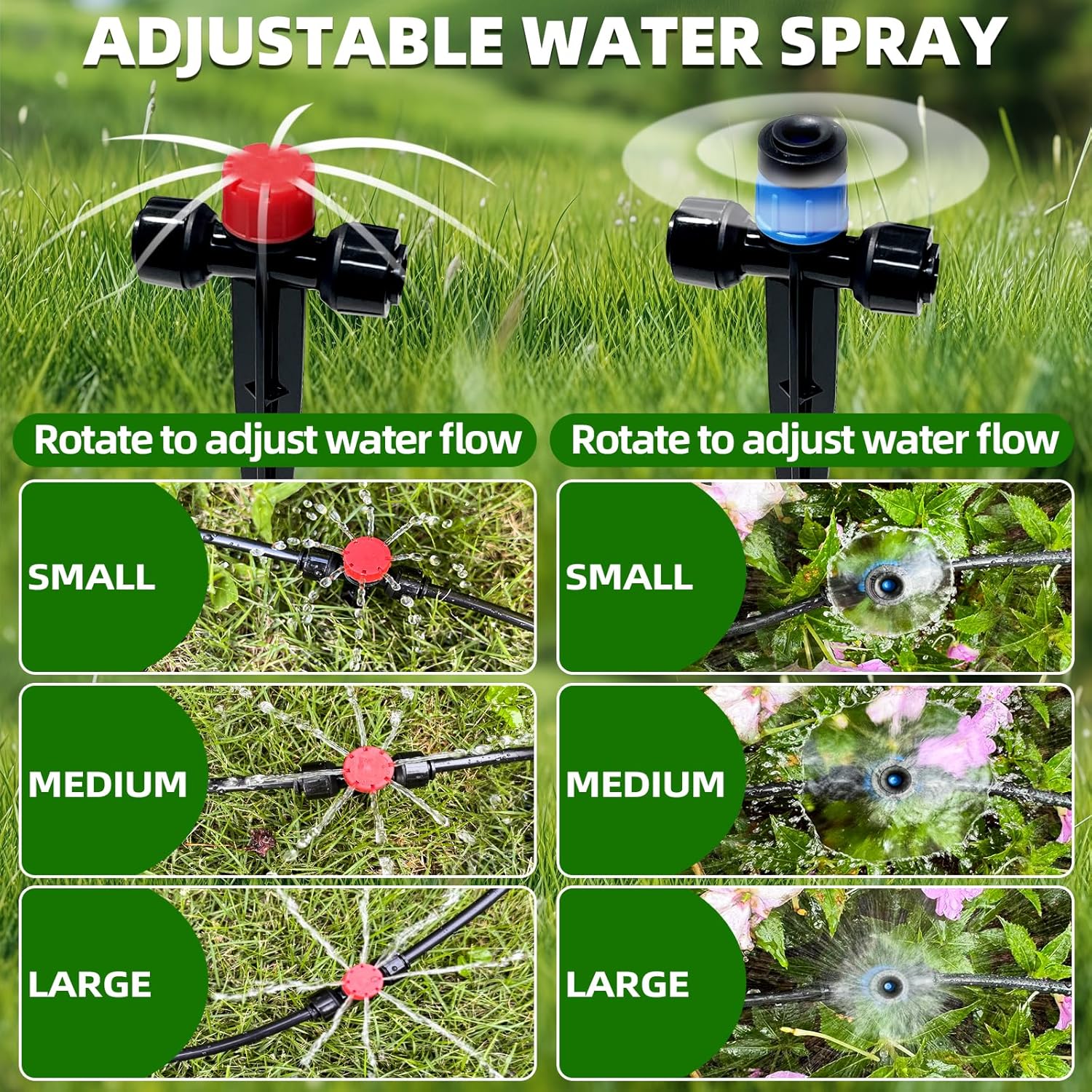- 【Two Kinds Of Spray】: We include two kinds of spray, which can adjust different water flows according to your needs. we include 18pcs 8-holes dripper and 12pcs vortex emitters