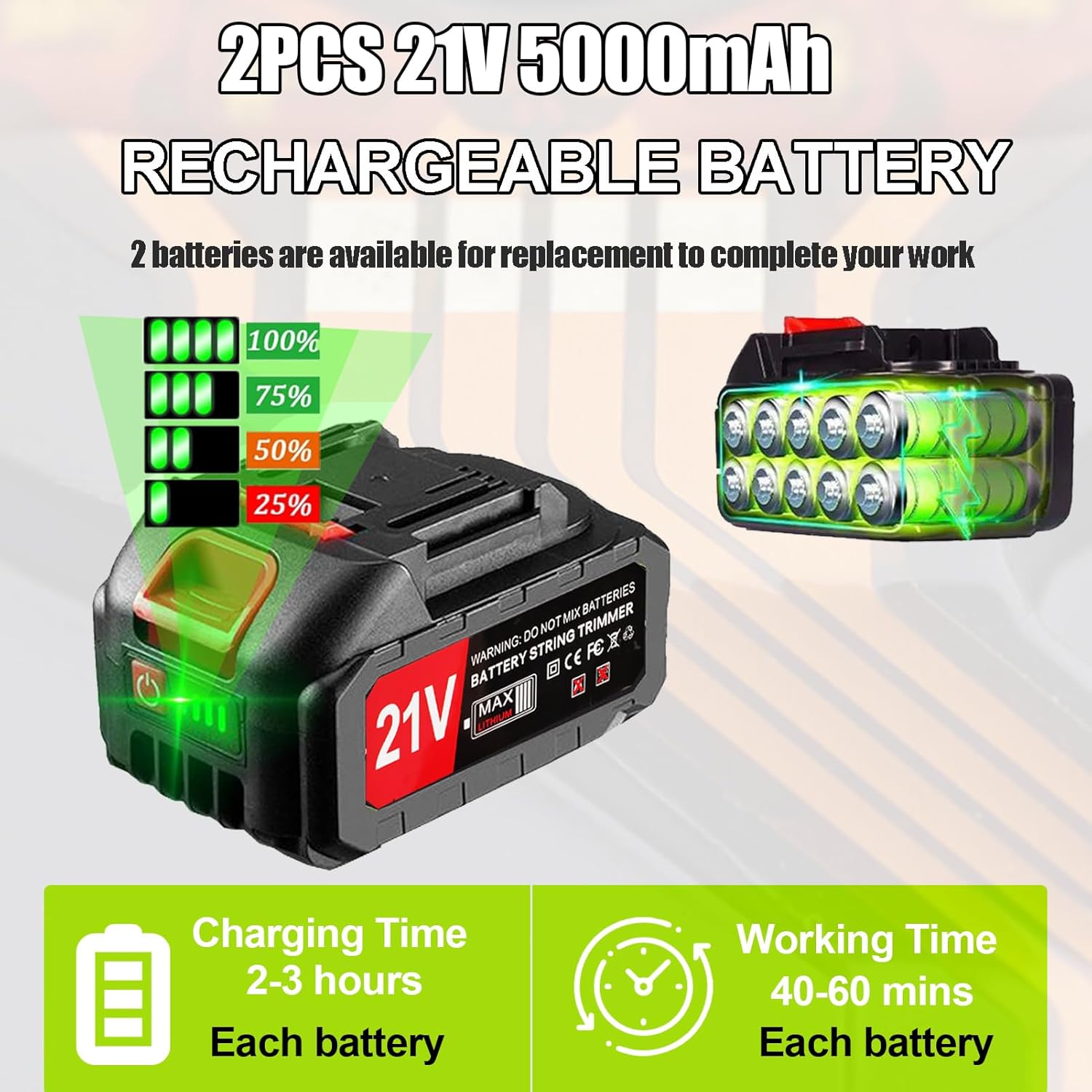 - 2025 UPGRADED ELECTRIC WEED WACKER: The cordless grass trimmer has been upgraded with smoother wheels, higher-strength blades and larger-capacity batteries.The multifunctional cordless electric weed wacker is versatile and can be used as grass trimmer, edger, lawn mower, easy for different cutting jobs, not limited by wires, you can mow anywhere. Weeding is as easy as walking and enjoy the fun of cutting.(fully charged before first use)