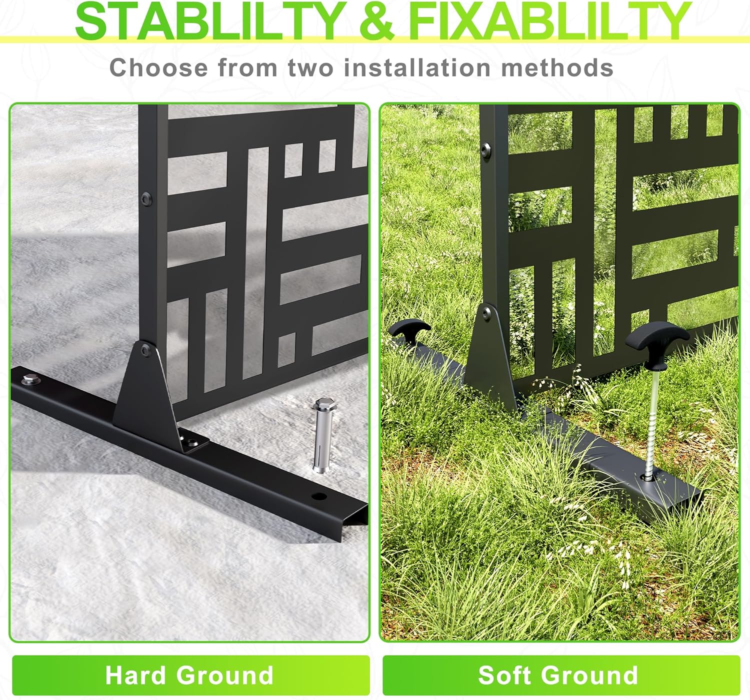 - 【Robust Metal Build】The metal privacy screen boasts a robust construction crafted from high-quality galvanized steel. Designed to endure the rigors of outdoor elements, its sturdy build guarantees prolonged durability.
