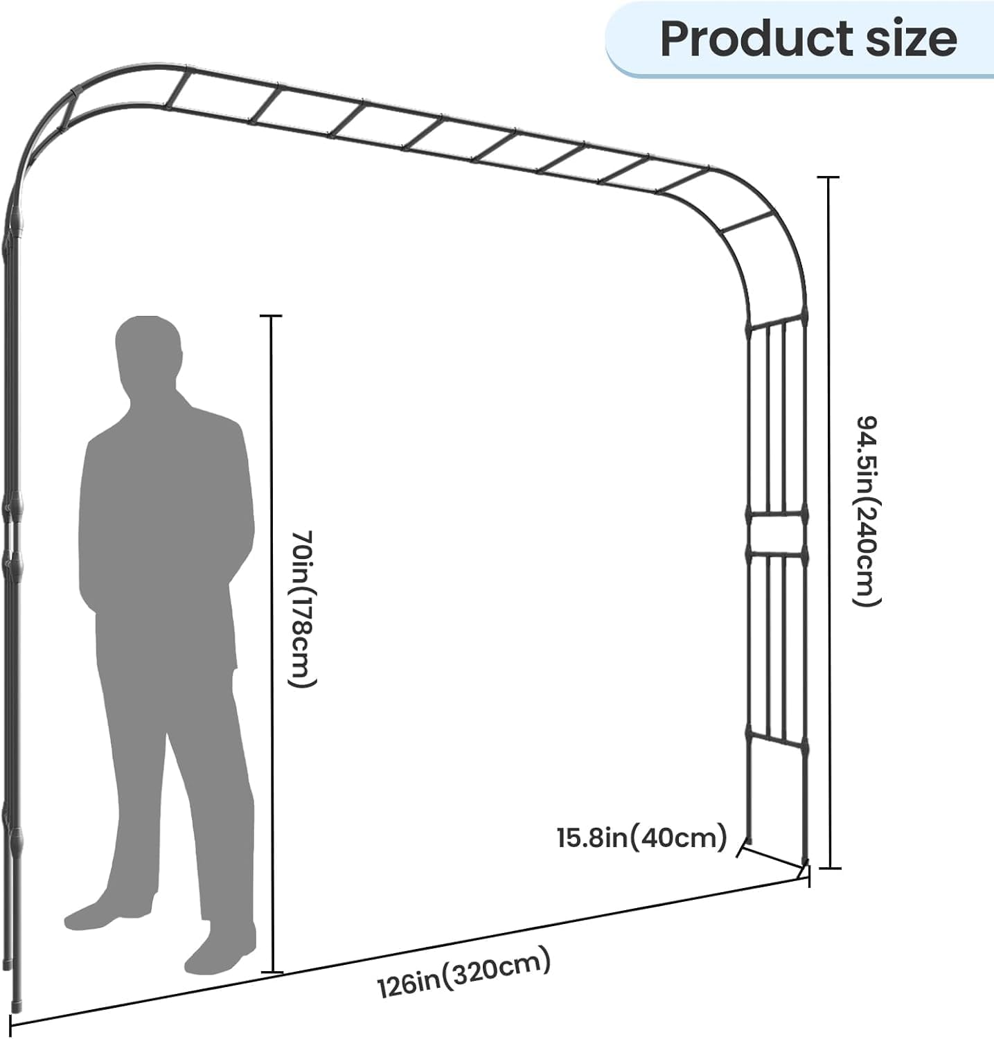 Garden Arch Arbor Trellis, 126" L x 94.5" H, Metal Archway for Climbing Plants Outdoor, Wide Sturdy Garden Arch for Lawn, Party, Ceremony Wedding Decoration