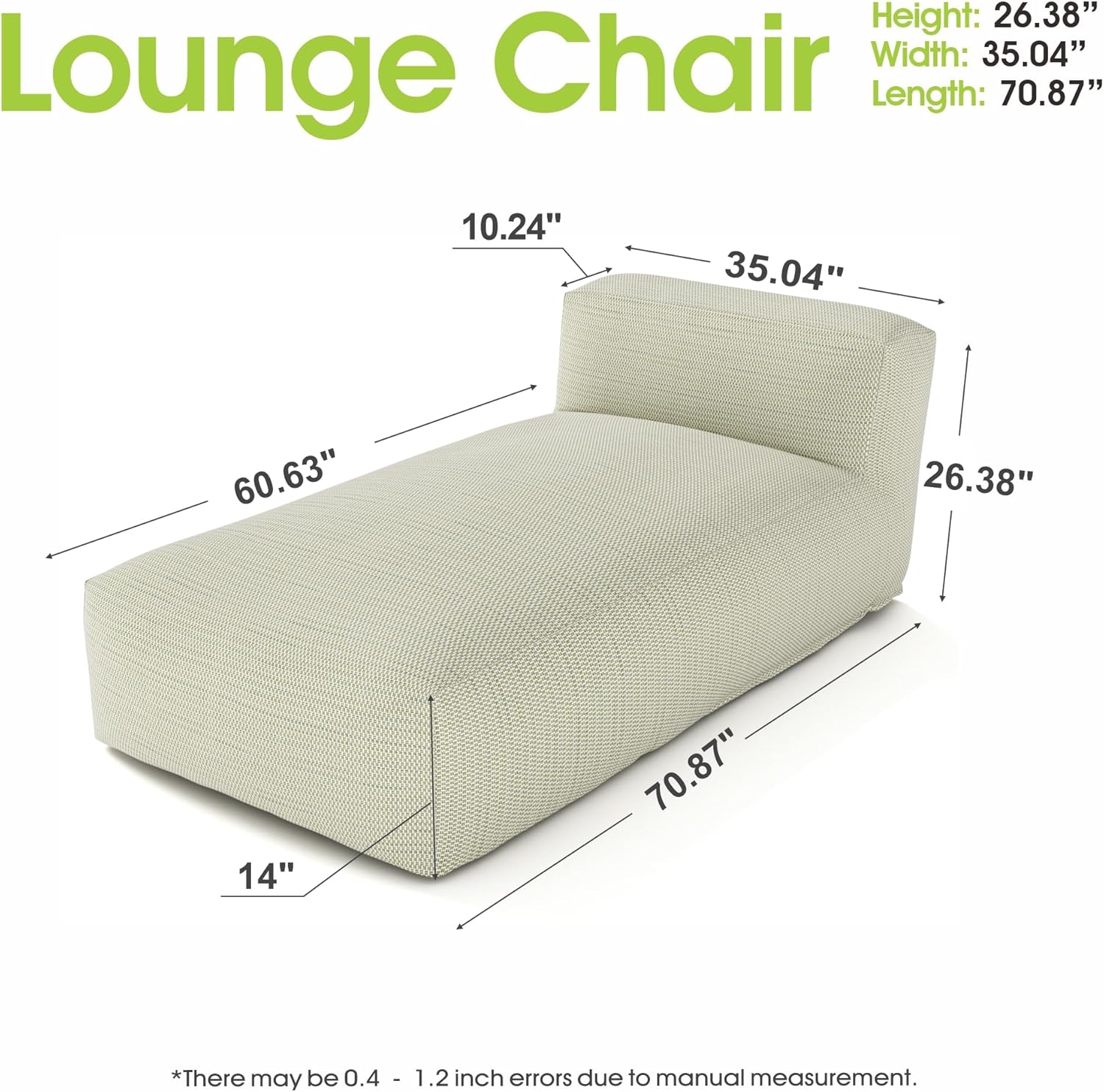 - Oversized Outdoor Bean Bag Lounger for Relaxation & Sunbathing - Stretch out and unwind with this large outdoor bean bag lounger chair, perfect for sunbathing, tanning, or poolside lounging. Designed with generous dimensions (70.87" L x 35.04" W), it functions as a patio daybed, chaise lounge, or outdoor futon, bringing resort-style comfort to your deck, yard, or beach house.