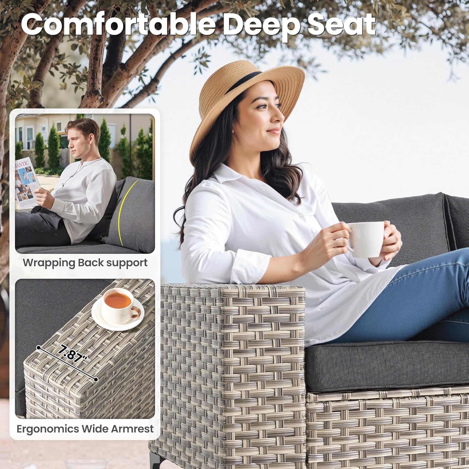 - Outdoor Furniture Set: This patio sofa set can well integrated into different outdoor scenes, patio, outdoor, porch, garden, backyard, balcony, poolside, lawn, yard, deck, etc. Assembly Tips: OVIOS outdoor patio furniture set comes with all hardware & necessary tools