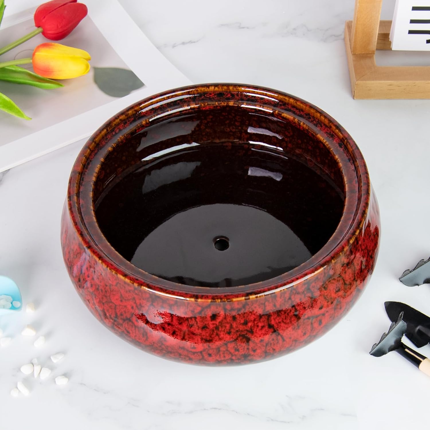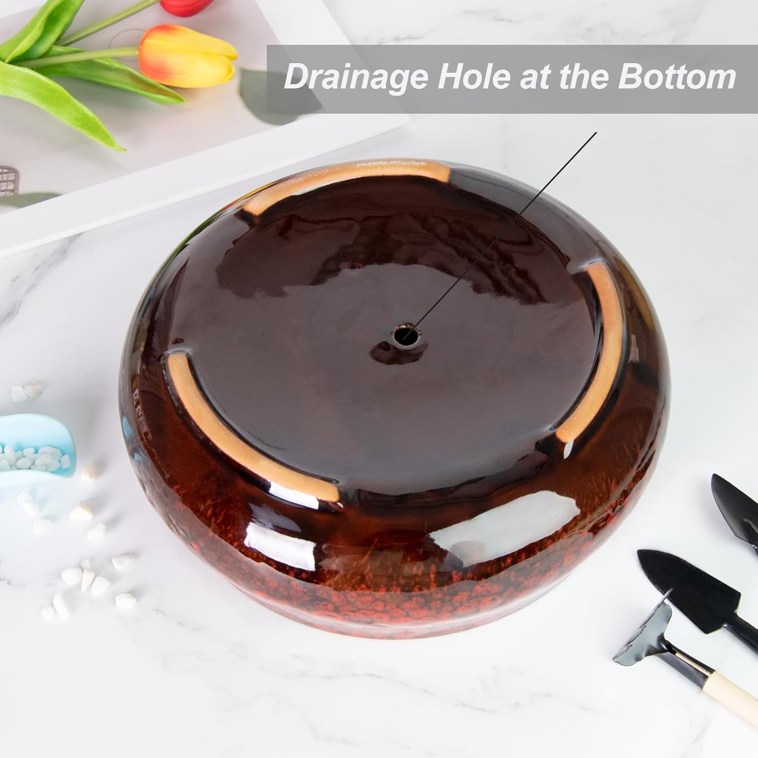 ARTKETTY Succulent Pots - 8 Inch Plant Pot, Large Bonsai Pots with Drainage, Ceramic Planters for Indoor Outdoor Plants, Round Shallow Cactus Flower Plant Container Bowl Decorative Home Garden