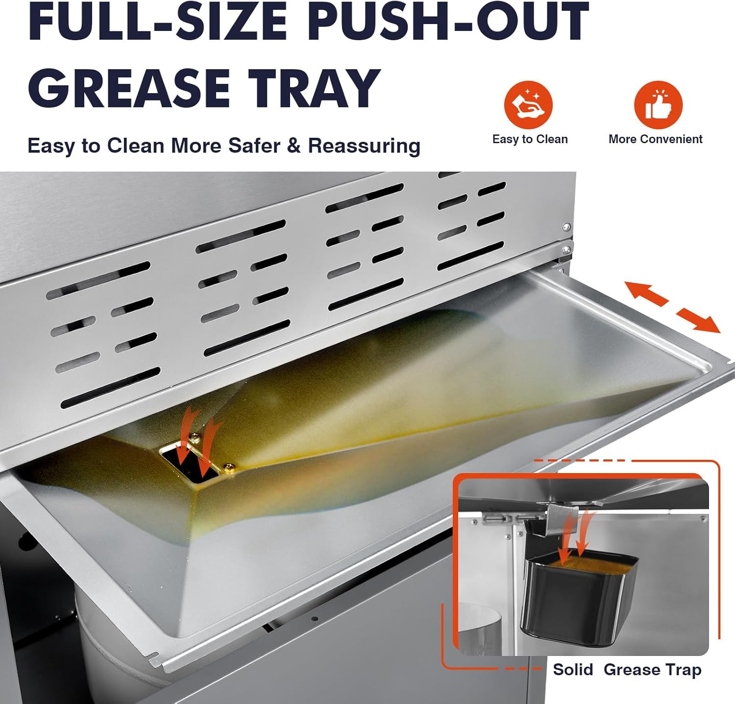 - 🥥[Extra Side Burner] 6 Burners propane grill comes with a removable grease tray, extra side burner provide more cooking space and cup to ensure easy maintenance of your outdoor grilling experience.
