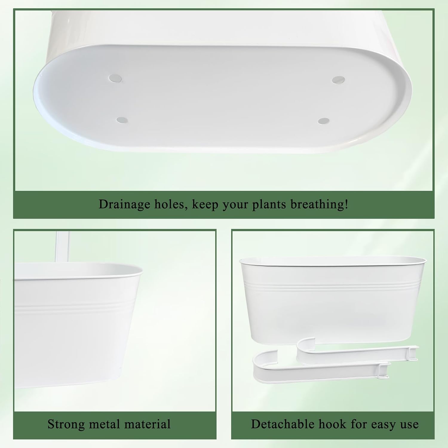 Hanging Planters for Outdoor Plants, 17" Railing Planter Pots, Metal Fence Flower Pot for Porch Balcony with Detachable Hook (White, Pack of 4)