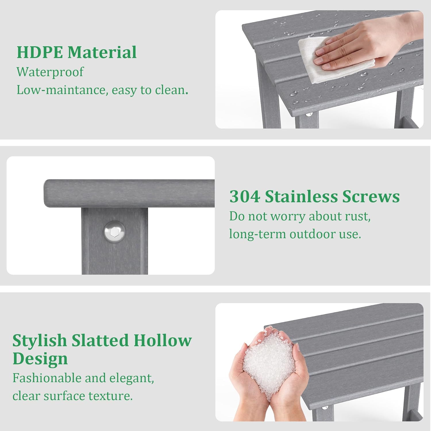 Outdoor Side Table, HDPE Small Adirondack Side Tables, Outside End Table for Patio, Porch, Deck, Pool, Weather Resistant/Easy Maintenance (1PC, Gray)