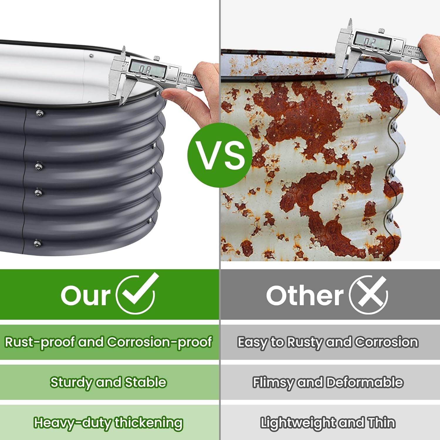 - Long-Lasting Quality:The garden beds are made of zinc aluminum-magnesium steel for durability. This advanced material is more resistant to corrosion and rust than traditional galvanized materials. Lasts 2-6 times longer than traditional galvanized raised beds, far longer than wood raised garden bed.