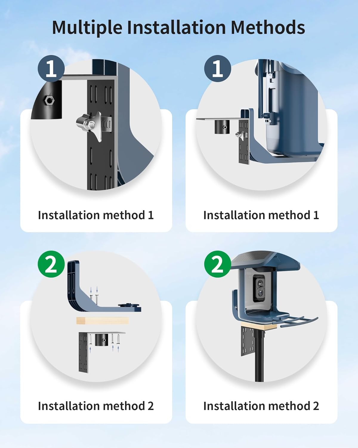 - 【Easy Installation】This bird feeding station reaches a total height of 90 inches and comes with 6.5-inch 5-prong base, 4 x connecting pole, and an L-shaped plate. The slip-in connection method allows for easy assembly, similar to stacking building blocks. Installation typically takes 20 to 40 minutes and no need extra tools. This user-friendly design ensures that anyone, from young enthusiasts to seniors, can set it up effortlessly.