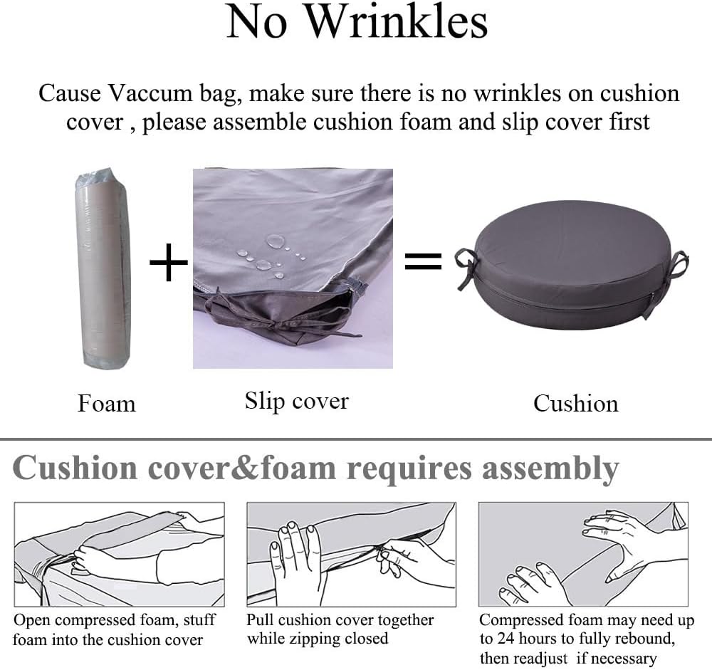 - 【Non-Slip & Back with Ties】These outdoor round chair pads come with Non slip bottom & attached ties to keep them securely fastened to your chairs. Seat cushions for kitchen chairs engineered with high-density foam, they provide the perfect balance of softness and resilience, chair cushions for outdoor furniture foam is fill enough to relieve hip pain. Replacement cushions for outdoor furniture provide sturdy support and won't sink if you sit for a long time