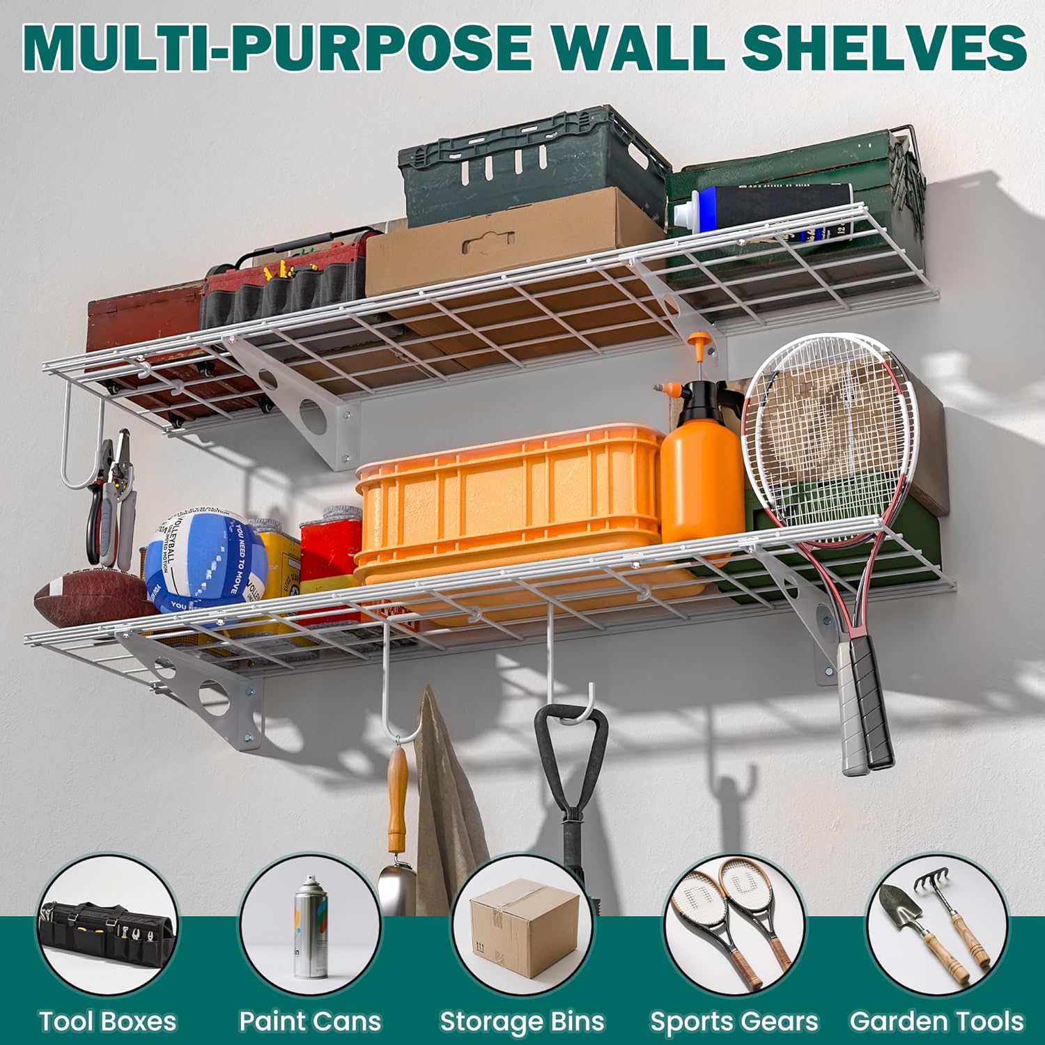 - RUST-PROOF COATED STEEL: Built to last, this wall-mounted shelf is made of high-quality powder-coated steel that resists rust, corrosion. Perfect for garage, basement, and laundry room—even in damp or harsh environment