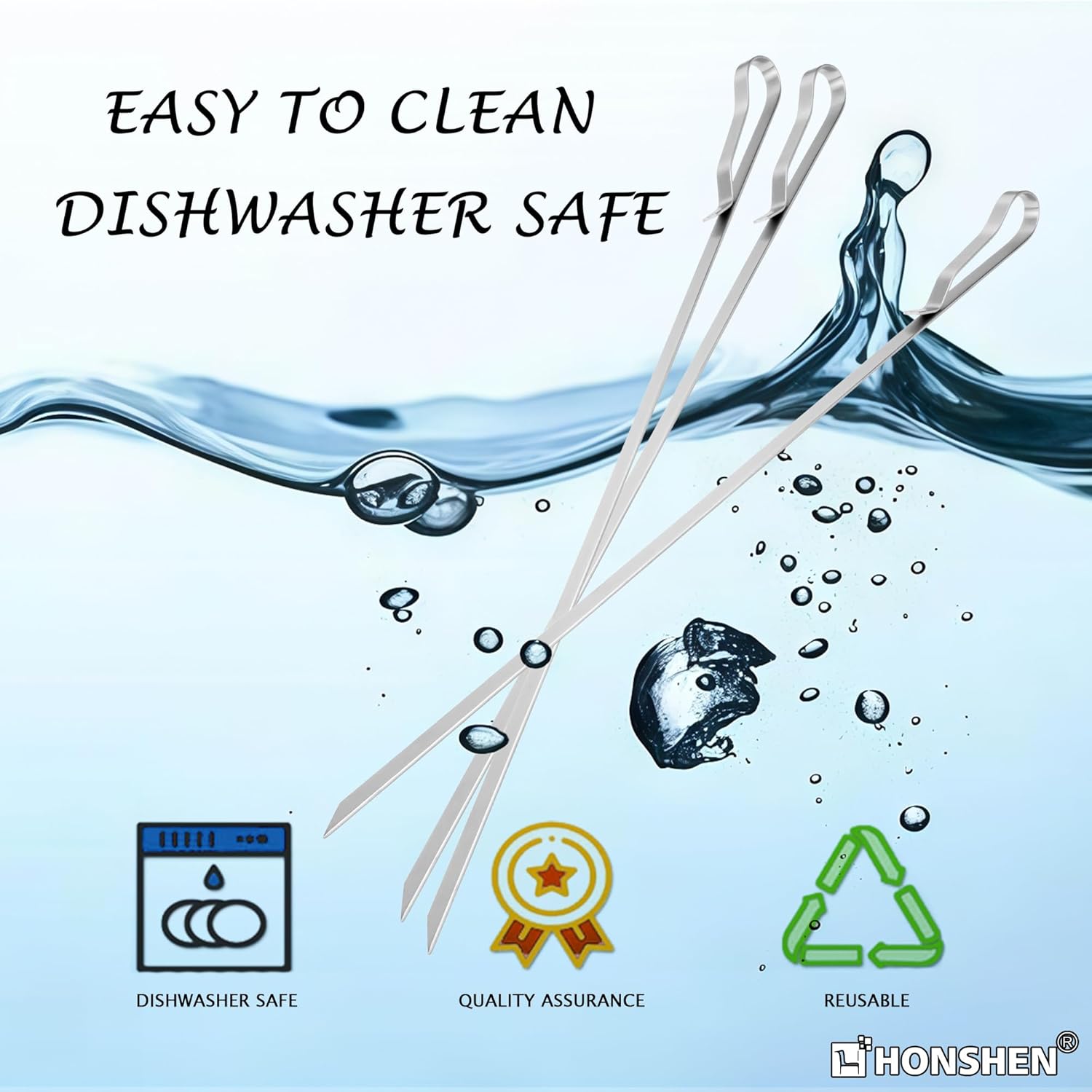 - MULTIPURPOSE & EASY TO CLEAN: Stainless steel kabob skewers are reusable. After each time’s use, just let these grilling skewers sit in warm water, hand wash with gentle detergent or threw them in dishwasher,wipe away water and keep in dry place, and they’ll come out as new. The metal shish kabab skewers can be can be reused, saving you money completely. Perfect tool for grilling kabobs, hotdogs, sausages, seafood, s'mores or even for making treats like candy apples and tanghulu;