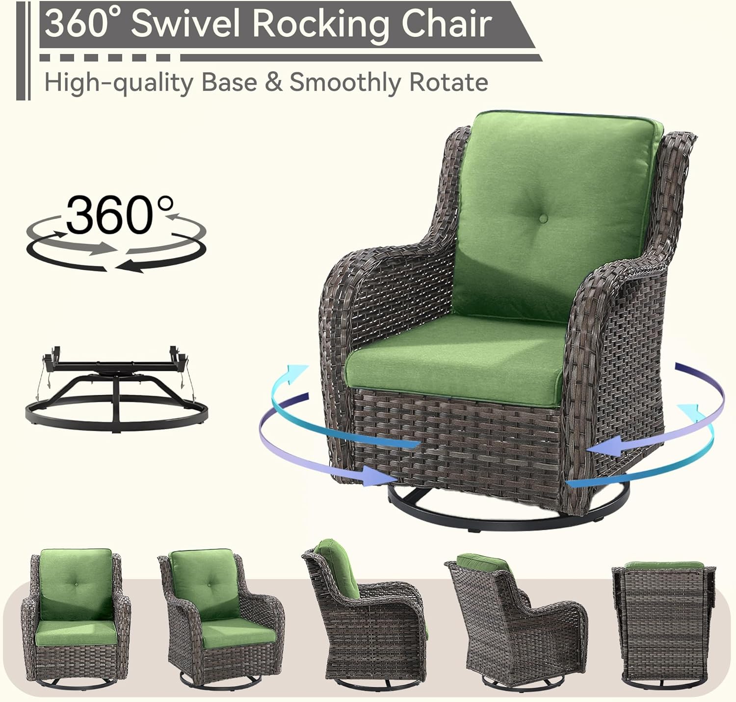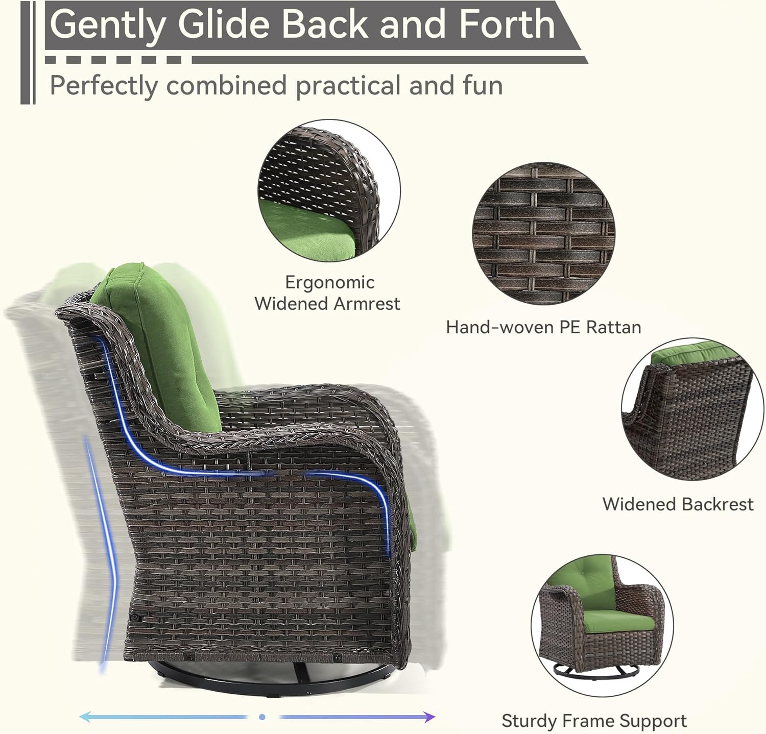 2 Pieces Outdoor Swivel Rocker Patio Chairs Set - Outdoor Wicker Patio Conversation Sets with 1 Side Table, Olefin Fabric Cushions Suitable for Backyard Deck and Porch, Green