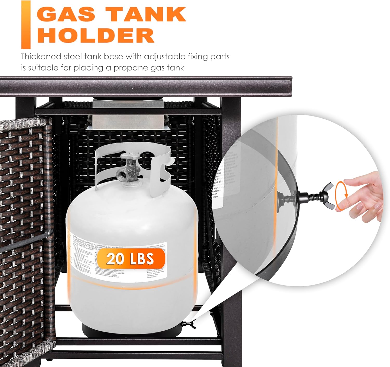 Nuu Garden Outdoor 43" 50,000 BTU Propane Gas Fire Pit Table, Ceramic Tabletop and Rattan Weaved Iron Frame, Water-Proof Oxford Cover, Glass Wind Guard, Glass Beads, Lid Included, Dark Brown & Coffee