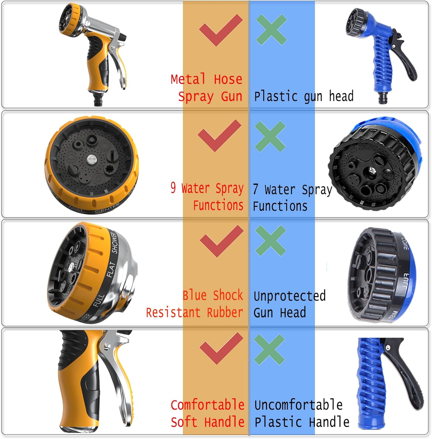 - Your All-in-One Solution: The Ultimate Hose Nozzle Sprayer for Home & Garden. Perfectly fitting all standard 3/4" GHT hoses (no adapters!), this garden hose nozzle excels at watering lawns, nurturing delicate flowers, deep-soaking roots, and tackling tough cleaning jobs on cars, patios, and more.