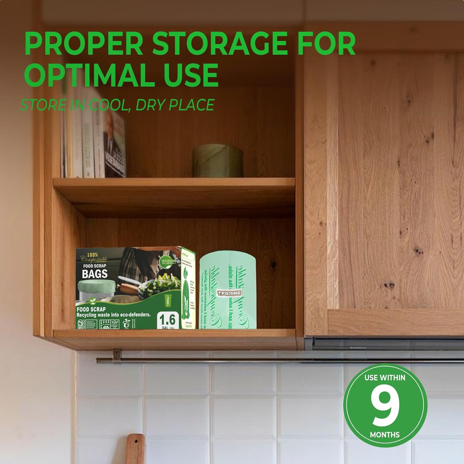 - 【BPI-CERTIFIED】Independently verified to ASTM D6400 standards, these 1.6-gallon bags decompose in commercial facilities within 18 weeks - perfect for city green bin programs.