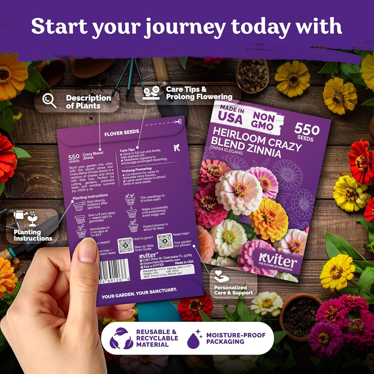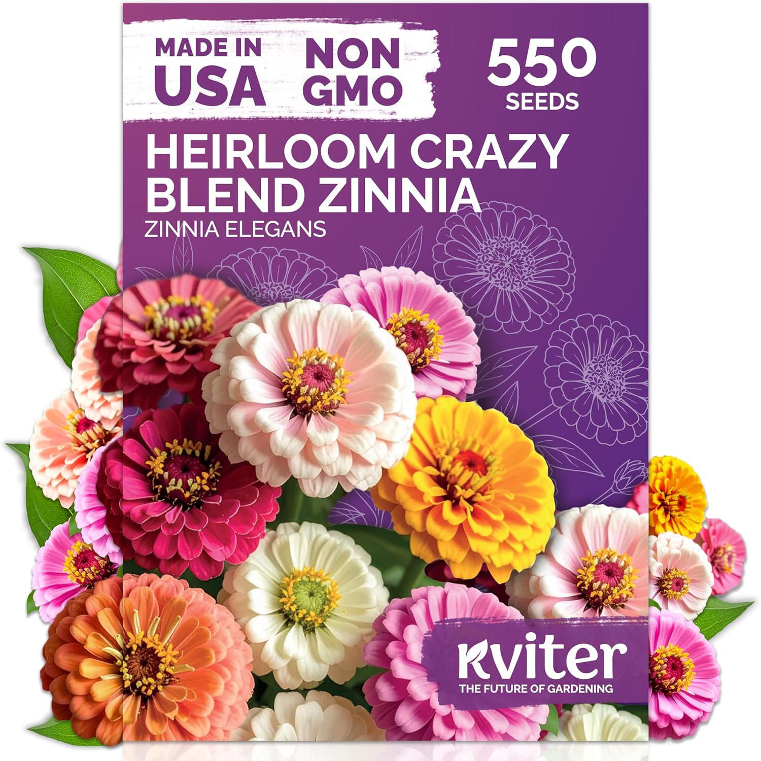 KVITER 550 Crazy Blend Zinnia Seeds for 2025 (Zinnia Elegans) – Double Zinnia Seed Mix, Heirloom Pollinator Magnet – Ideal Flower Seeds for Planting in Cutting Garden, Borders, Containers