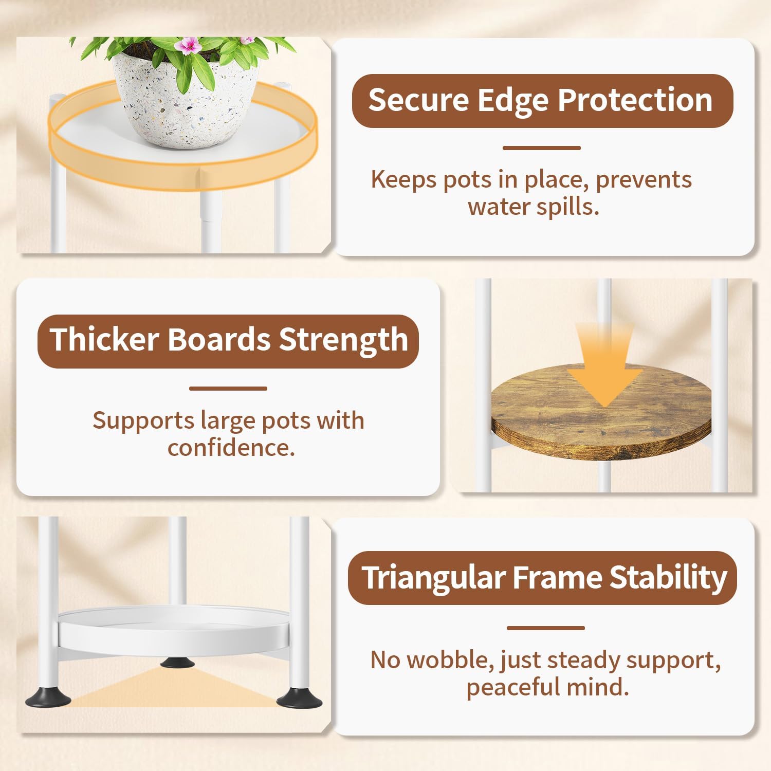 - 【No More Water Spills】The top tray of our large indoor plant stand has a raised edge to prevent any plants from slipping off while also preventing water from spilling during watering. You won’t have to worry about water stains on your floors or carpet anymore!